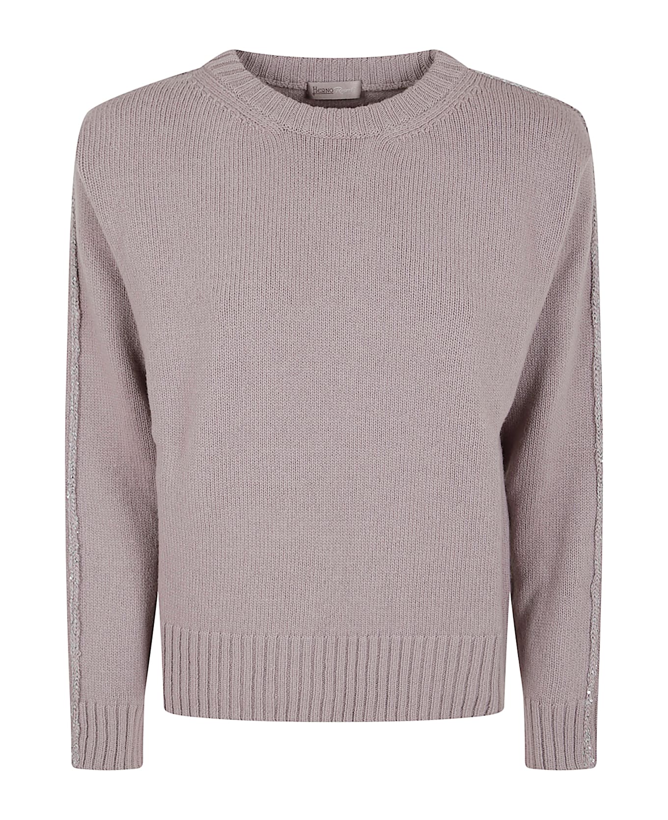 Pure carded wool sweater with a plain stitch by HERNO. Crewneck; long sleeves; ribbed edges; relaxed fit. Featuring lurex detail on the sleeves and a metal Herno logo on the back.