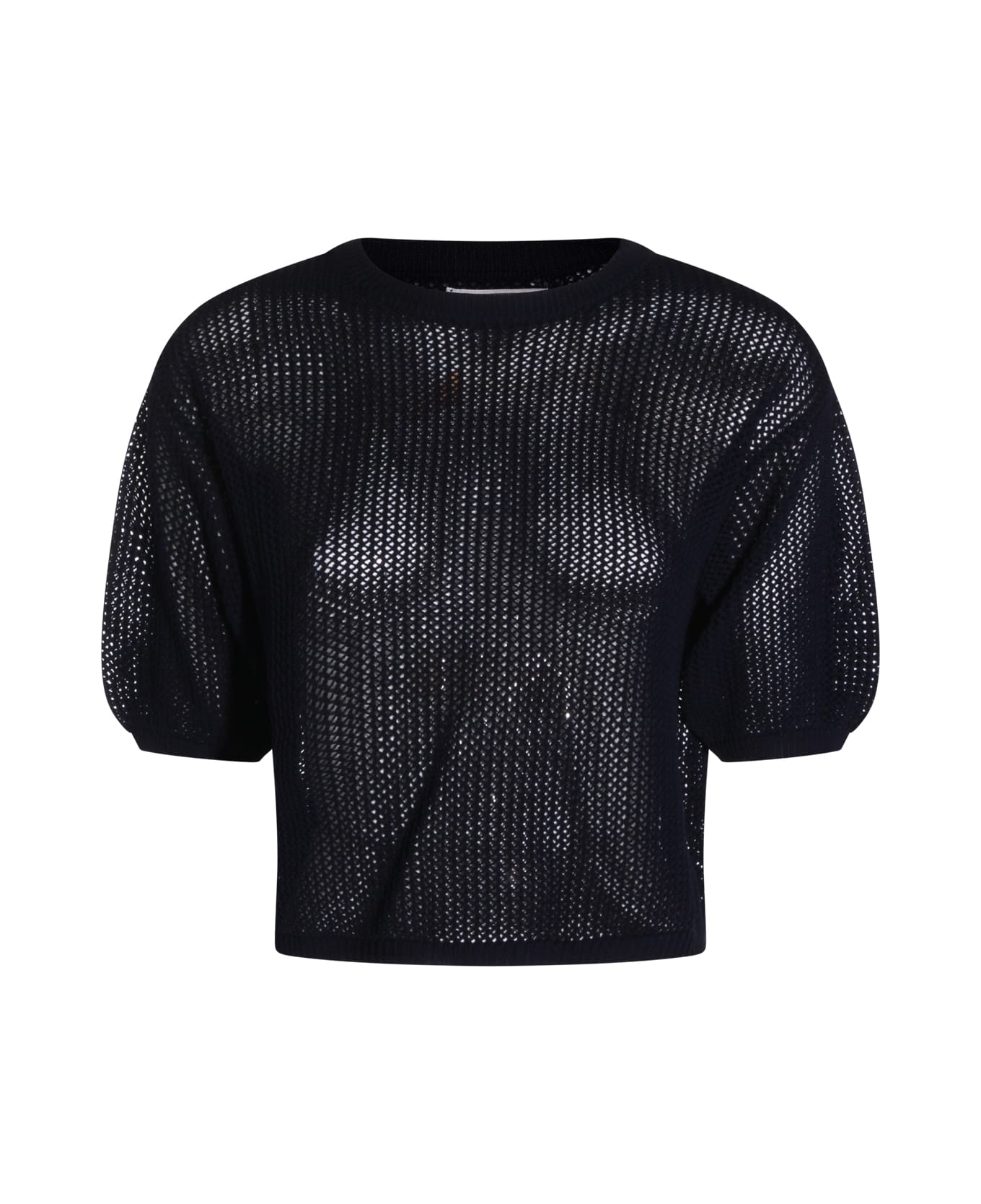Navy cotton knitwear from Antonelli Firenze featuring round collar, elasticated short sleeves and transparent effect.