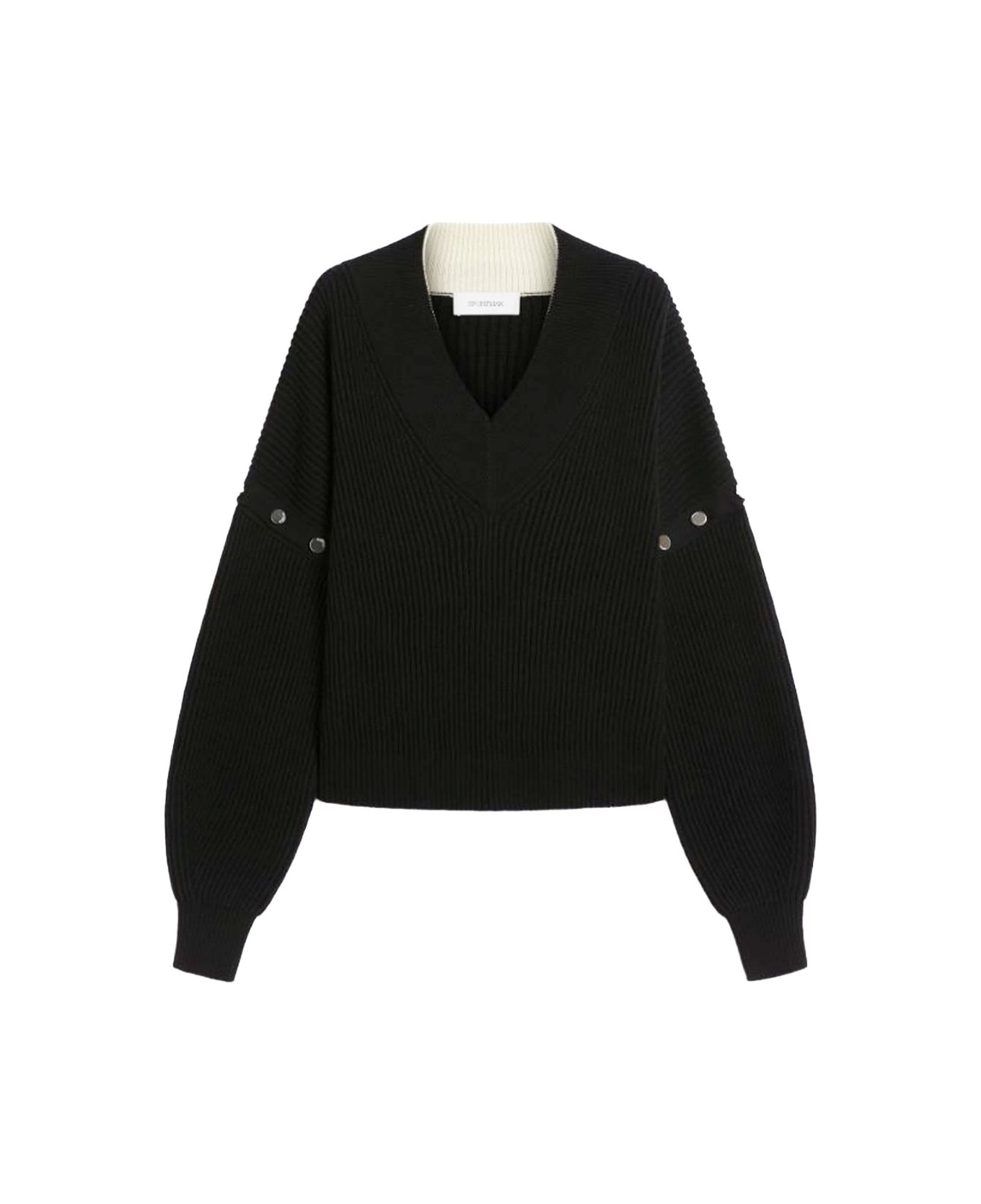 black wool v-neck ribbed knit
