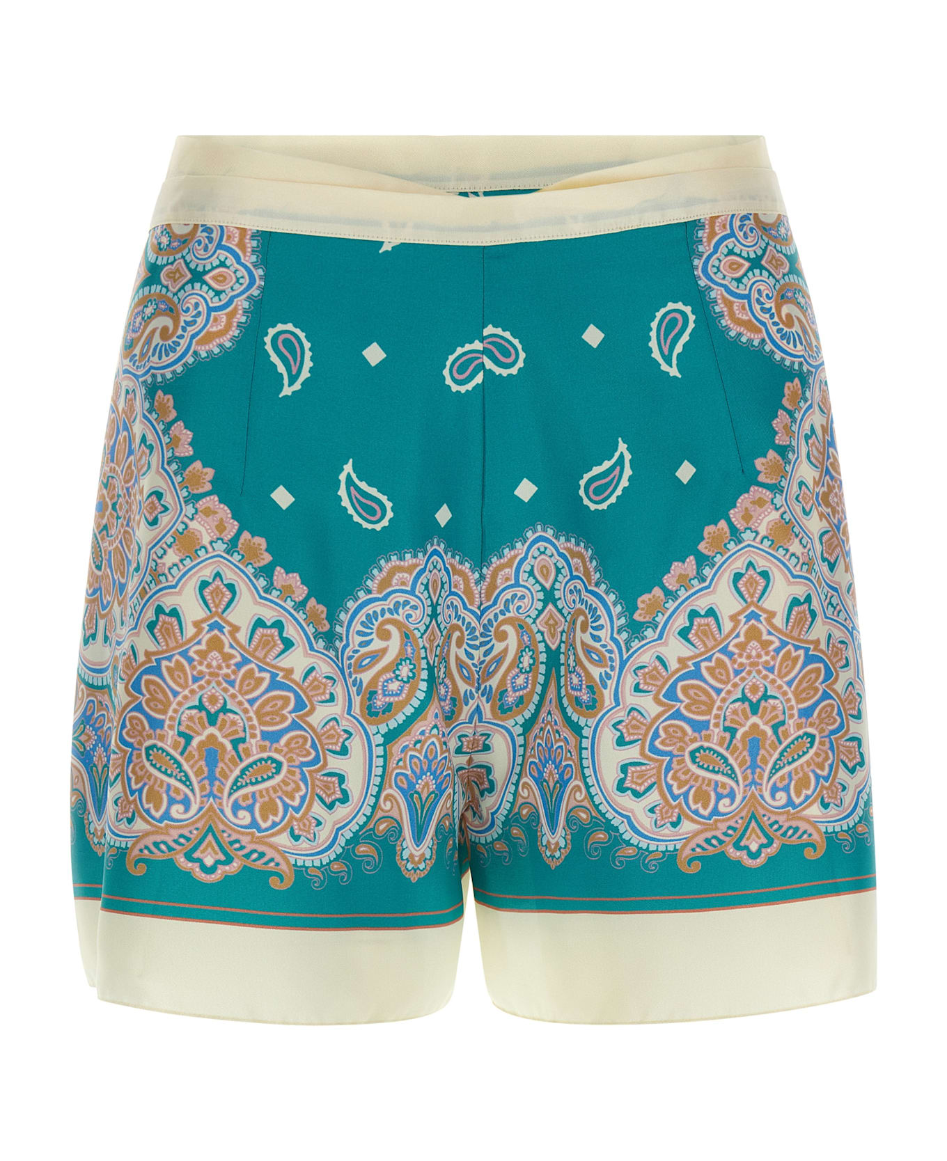 'Merengue' shorts in viscose and silk blend twill with all-over 'Bandana' print, pantupal model, and tie laces.