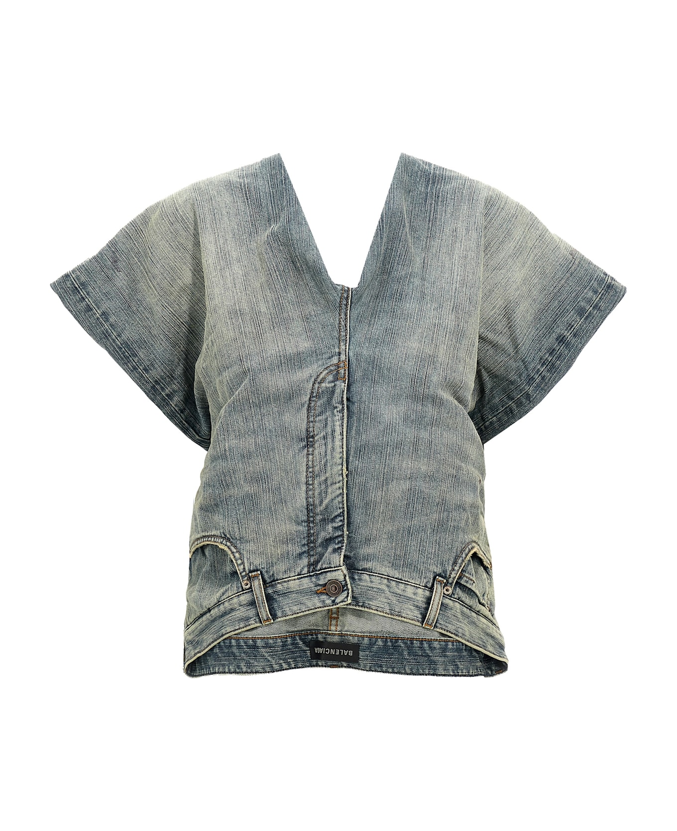 'Denim Pants' sleeveless top in cotton denim with V-neck. Composition: 100% cotton