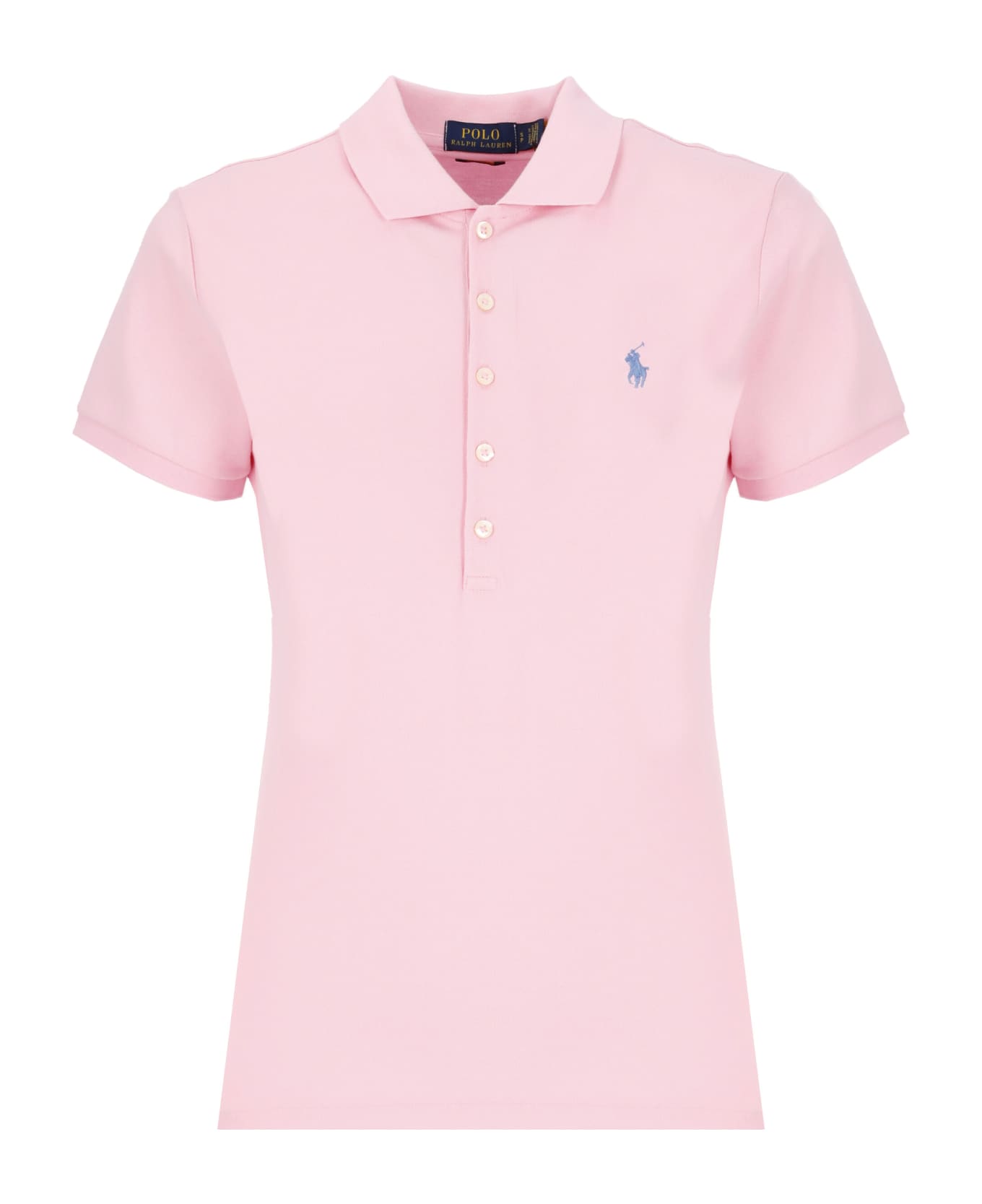 Polo With Pony Logo from Ralph Lauren: - Pink Ralph Lauren cotton polo for woman - Collar - Front buttons fastening - Short sleeves - Iconic embroidered Pony at chest - Two side vent at hem - Asyemmetric hem