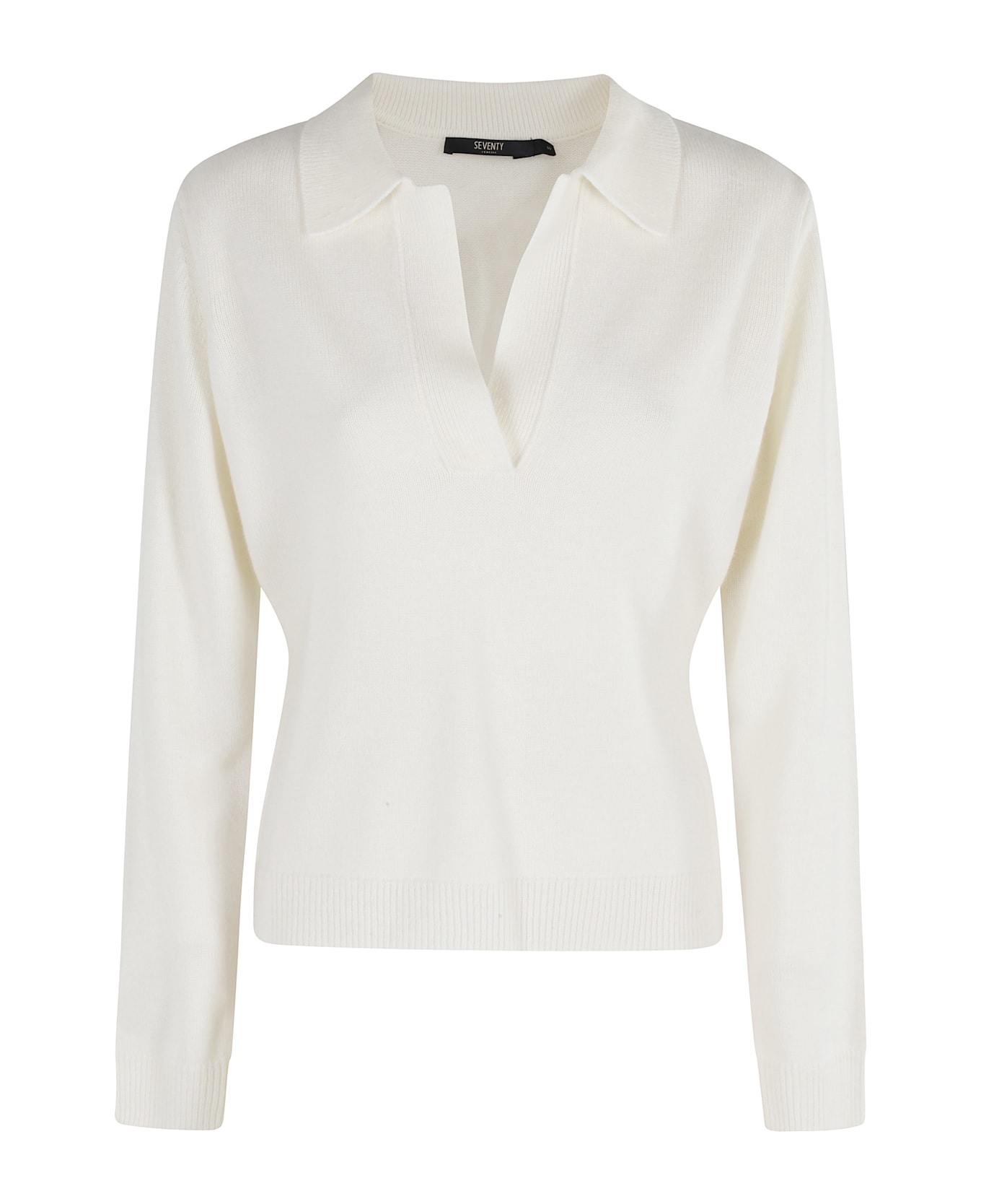 Polo shirt -Seventy -Cream color -Long sleeve -V-neck -Classic collar