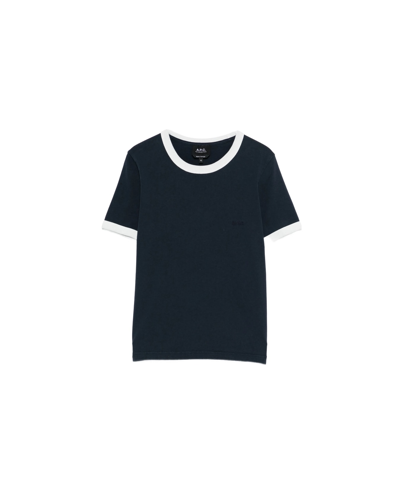 dark navy blue contrasting ribbed trims crew neck short sleeves embroidered logo detail