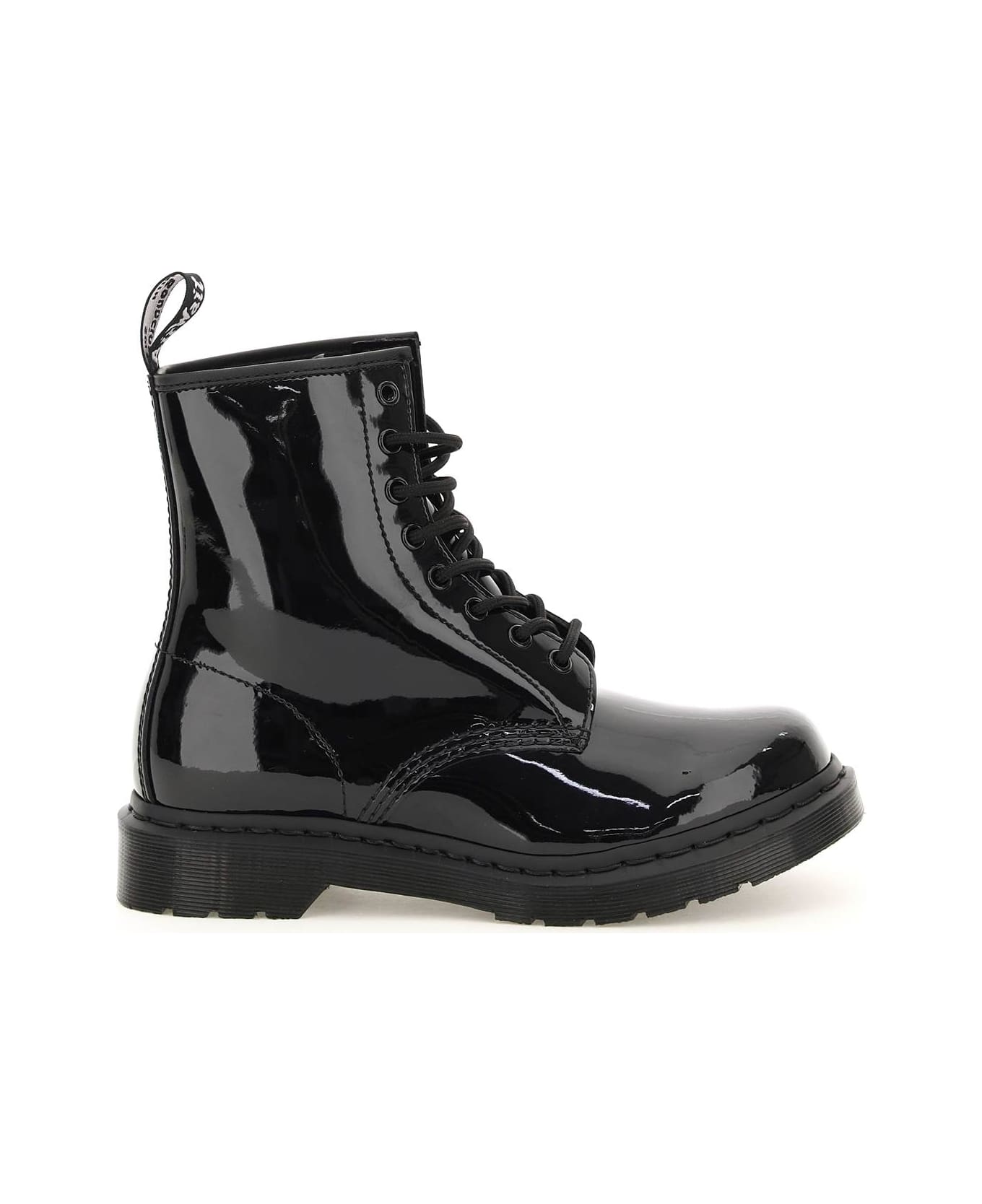 Dr. Martens 1460 Mono combat boots crafted in Patent Lamper leather with lace-up closure with eight eyelets in lacquered metal, rounded toe, tone-on-tone stitching on the base and rear ribbon loop tab with contrasting jacquard logo. Leather and fabric lining, tone-on-tone rubber sole. Composition: 100% pelle