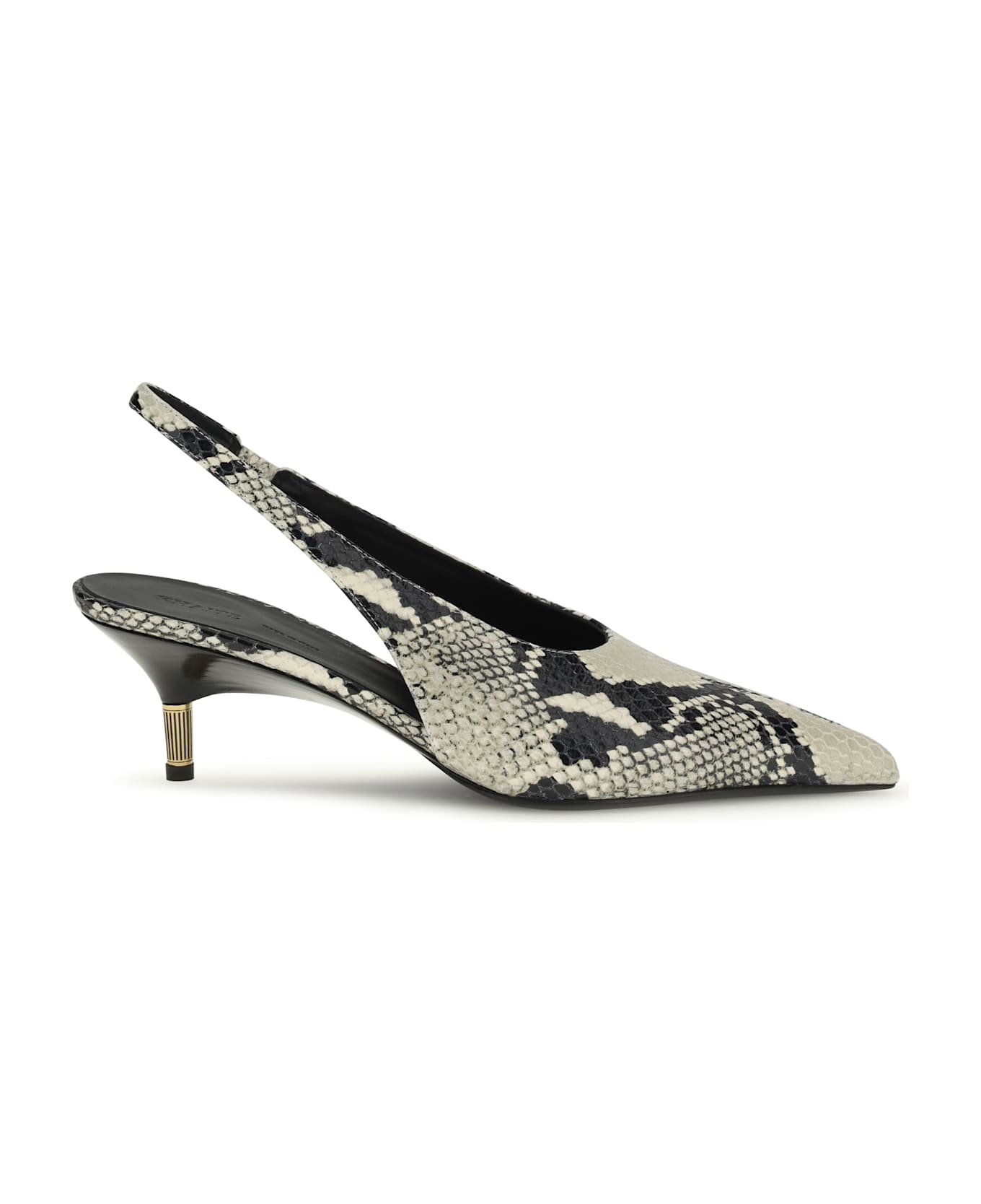 The bella slingback pumps by khaite are an elegant style featuring a pointed slingback heel with bold lines and refined materials. crafted from syampa python calfskin leather, they feature a heart-shaped construction and a sculpturally enveloping wedge heel embellished with iconic 18-karat gold-plated brass empire hardware, a distinctive detail that combines sophisticated style and luxury craftsmanship. Composition: 100% % Calf Leather Bos Taurus
