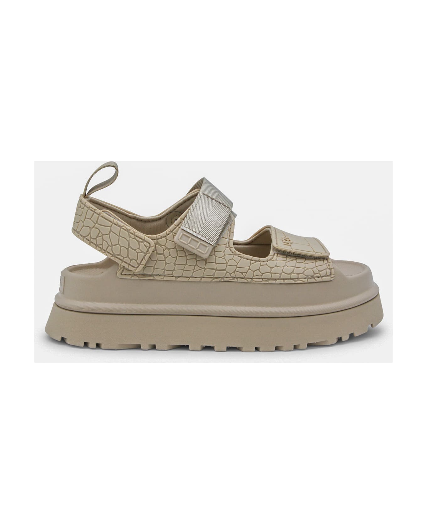 Sand sandals from Ugg featuring round open toe, oversize sole, open back and logo.