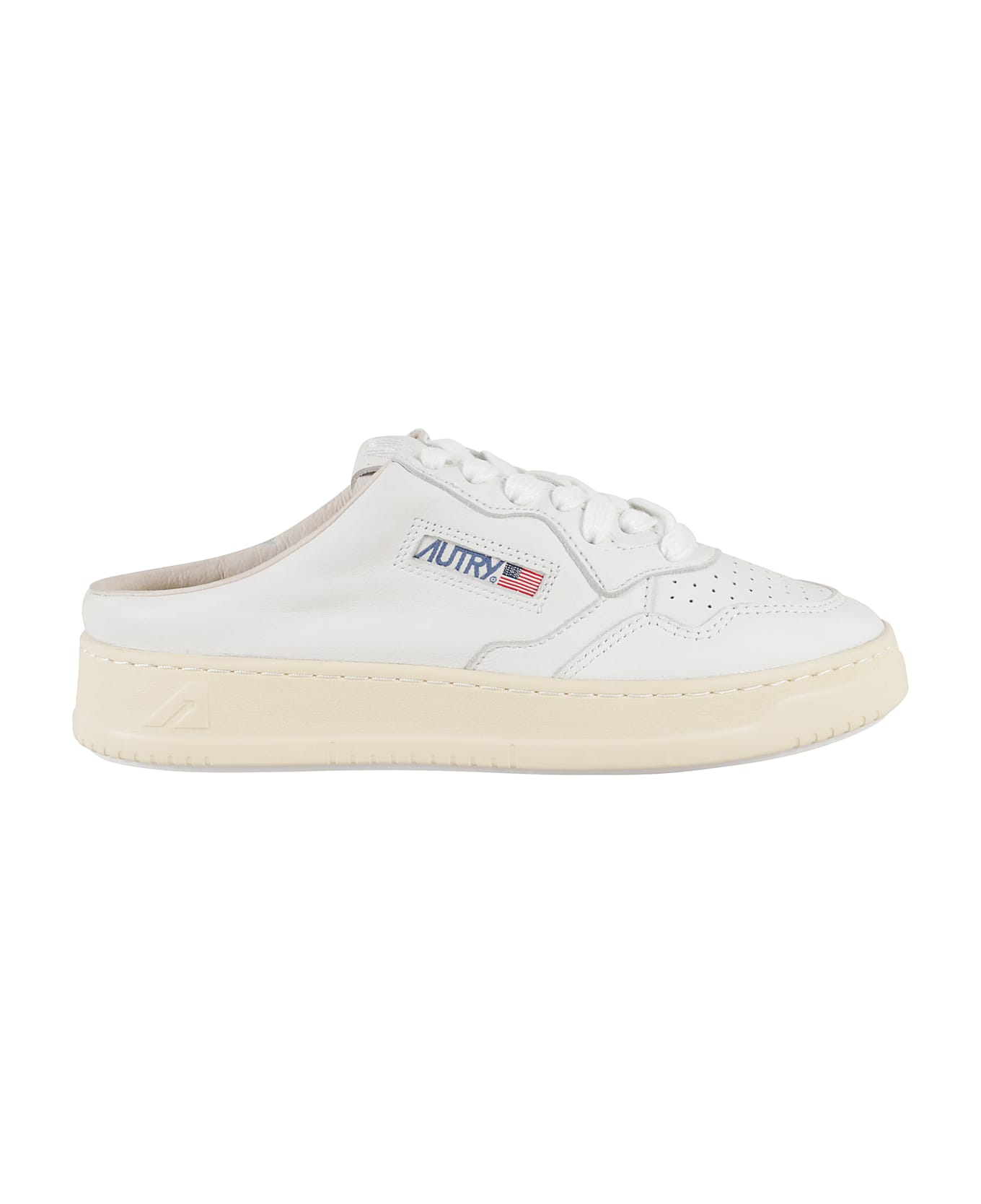 Mule Low sneakers - Autry - White color - Soft nappa leather upper - Perforated round toe - Embroidered logo tongue - Slip-on style - Side logo - Rubber sole.