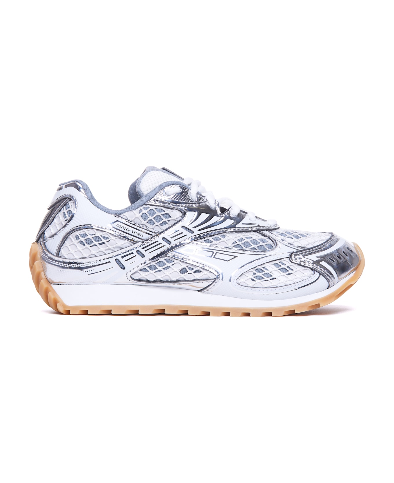 Bottega Veneta silver Orbit sneakers, leather and fabric upper, laces closure, round toe, logo