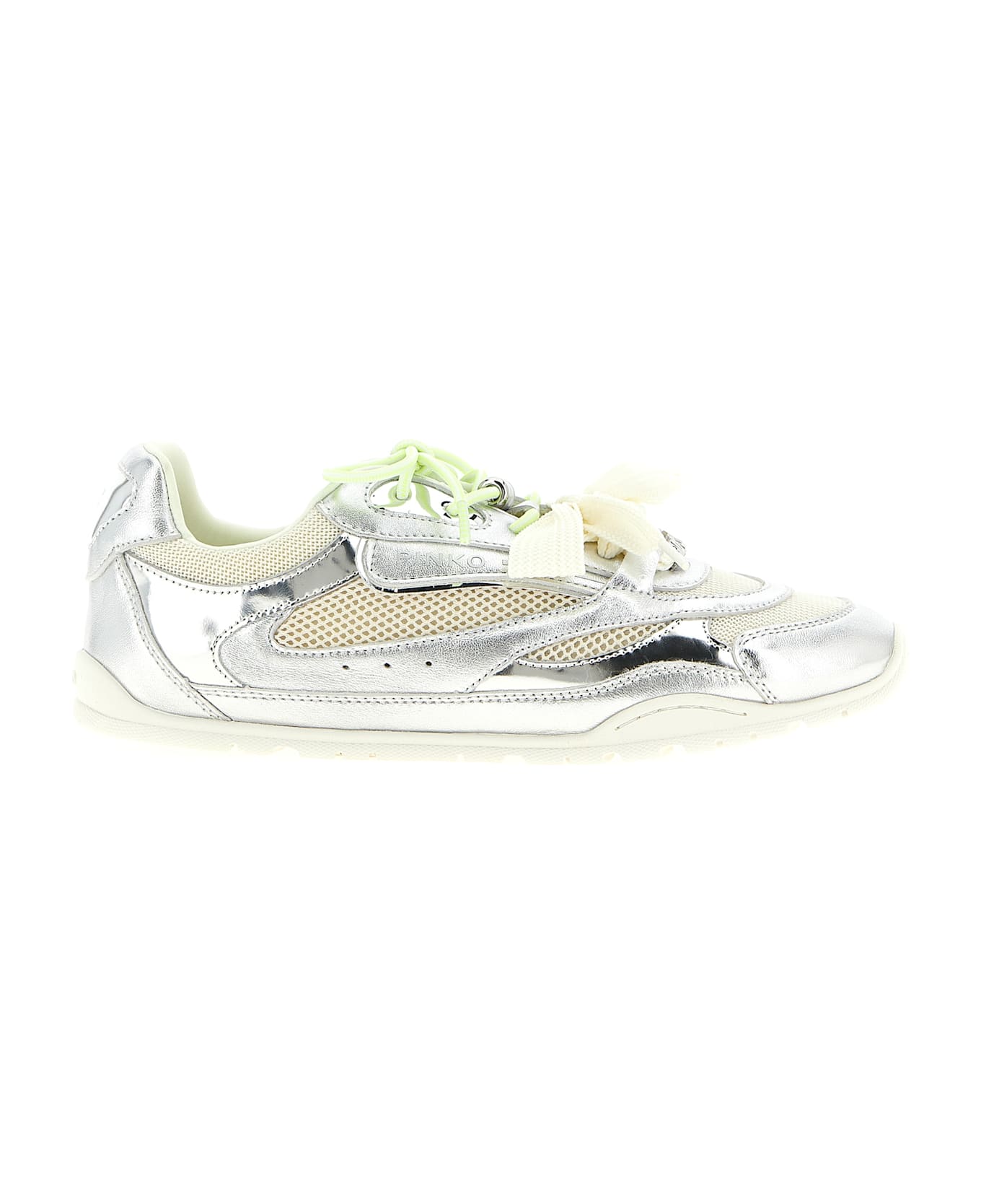 'Yulia 01' laminated leather and mesh sneakers, double laces with metal details inserted, rubber sole.
