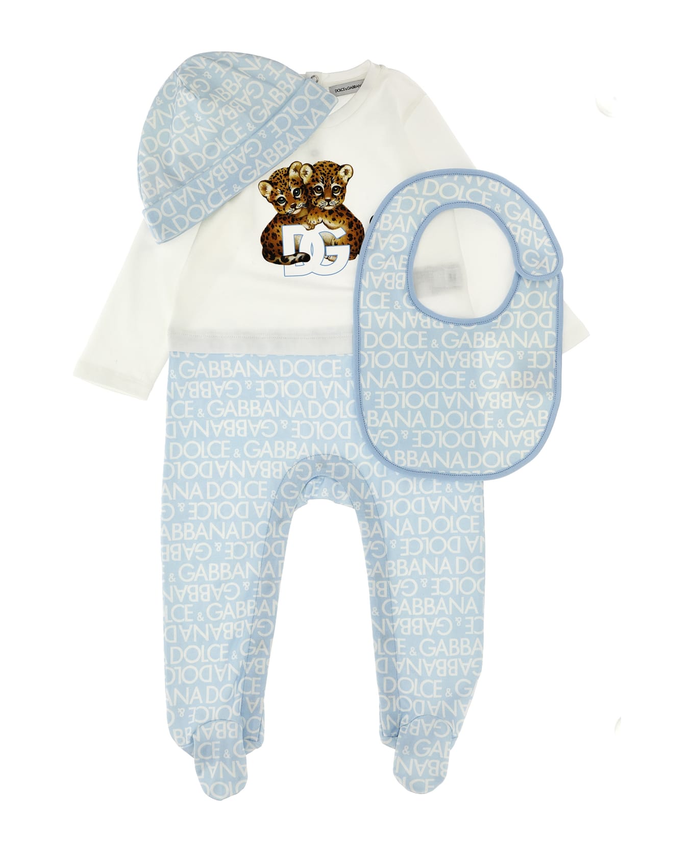 Cotton baby set with logo print consisting of jumpsuit, cap and bib. Composition: 100% cotton