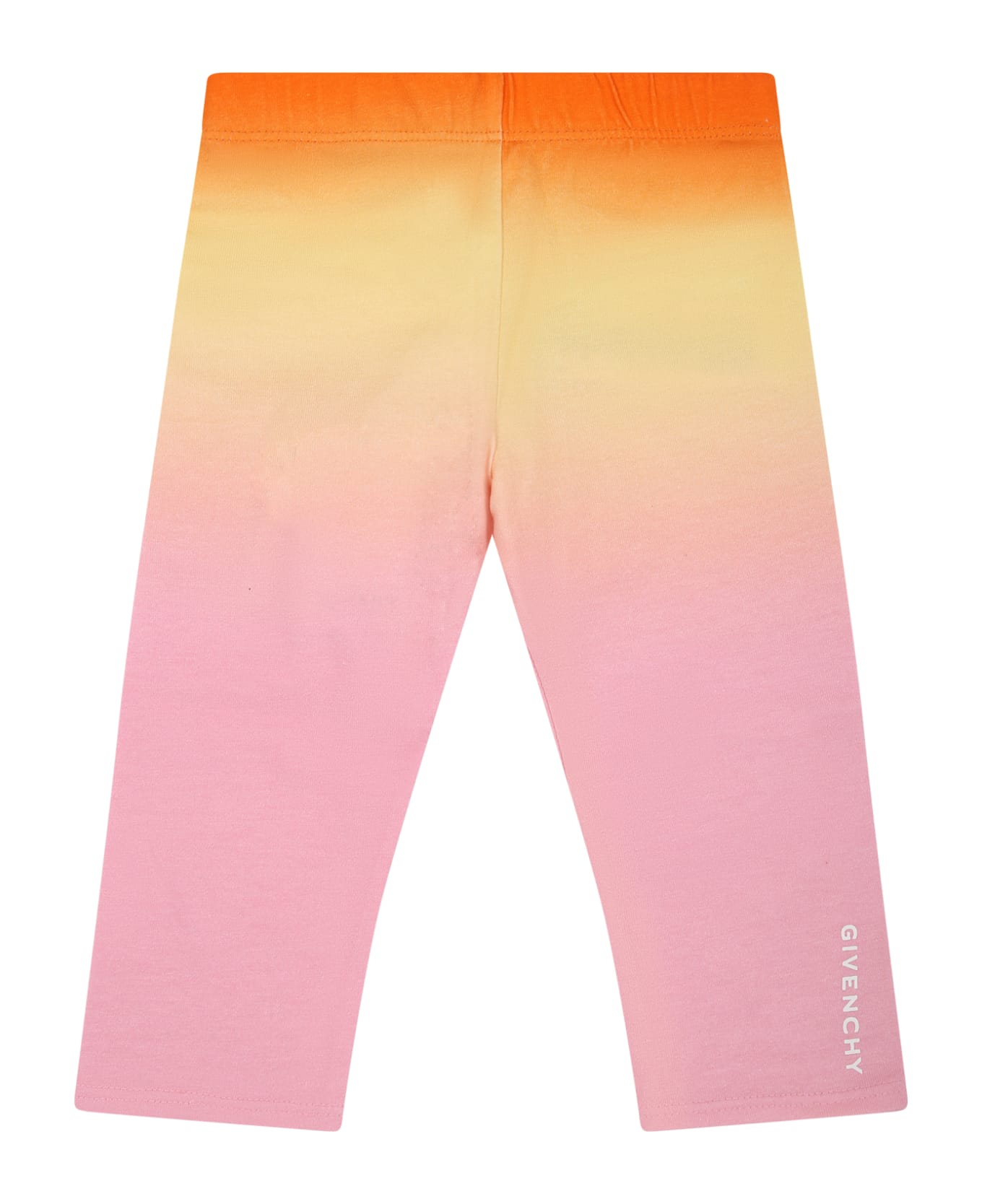 Multicolor leggings, with elastic waist. They are embellished with white logo on the leg.