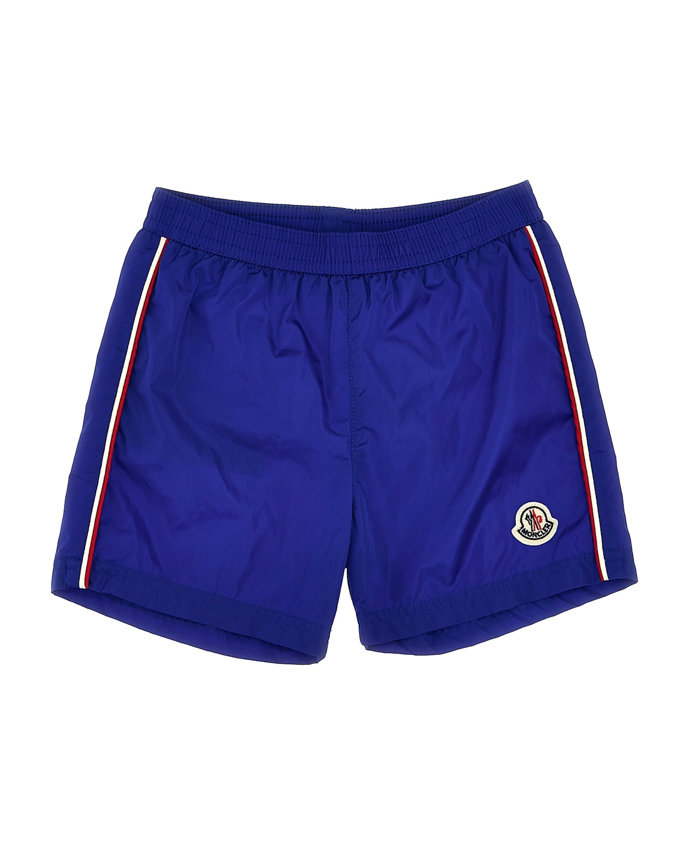 Technical nylon swimsuit with contrast details, front felt logo patch, elastic waistband, inner briefs.