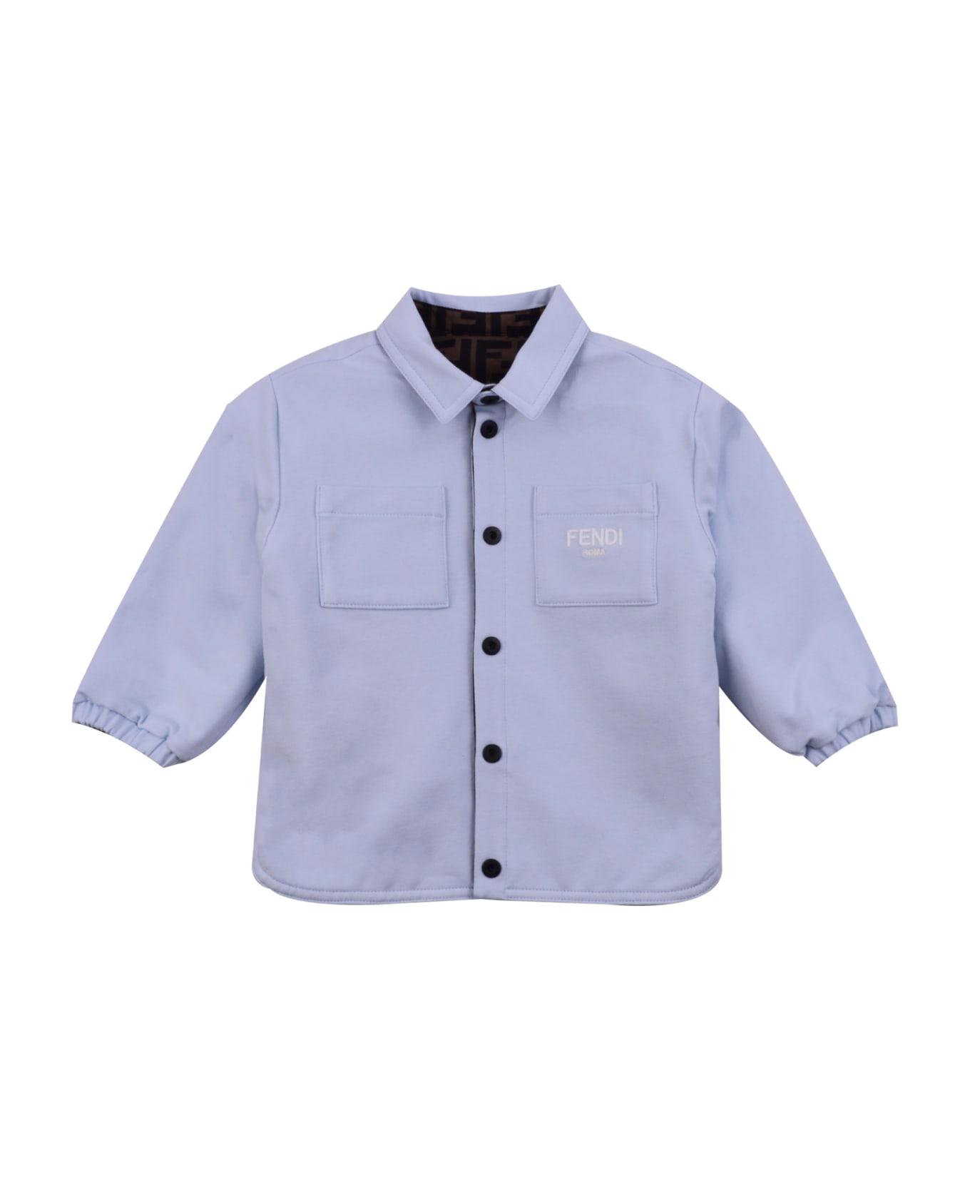 light Blue Sweatshirt On One Side And All-over Ff Nylon On The Other