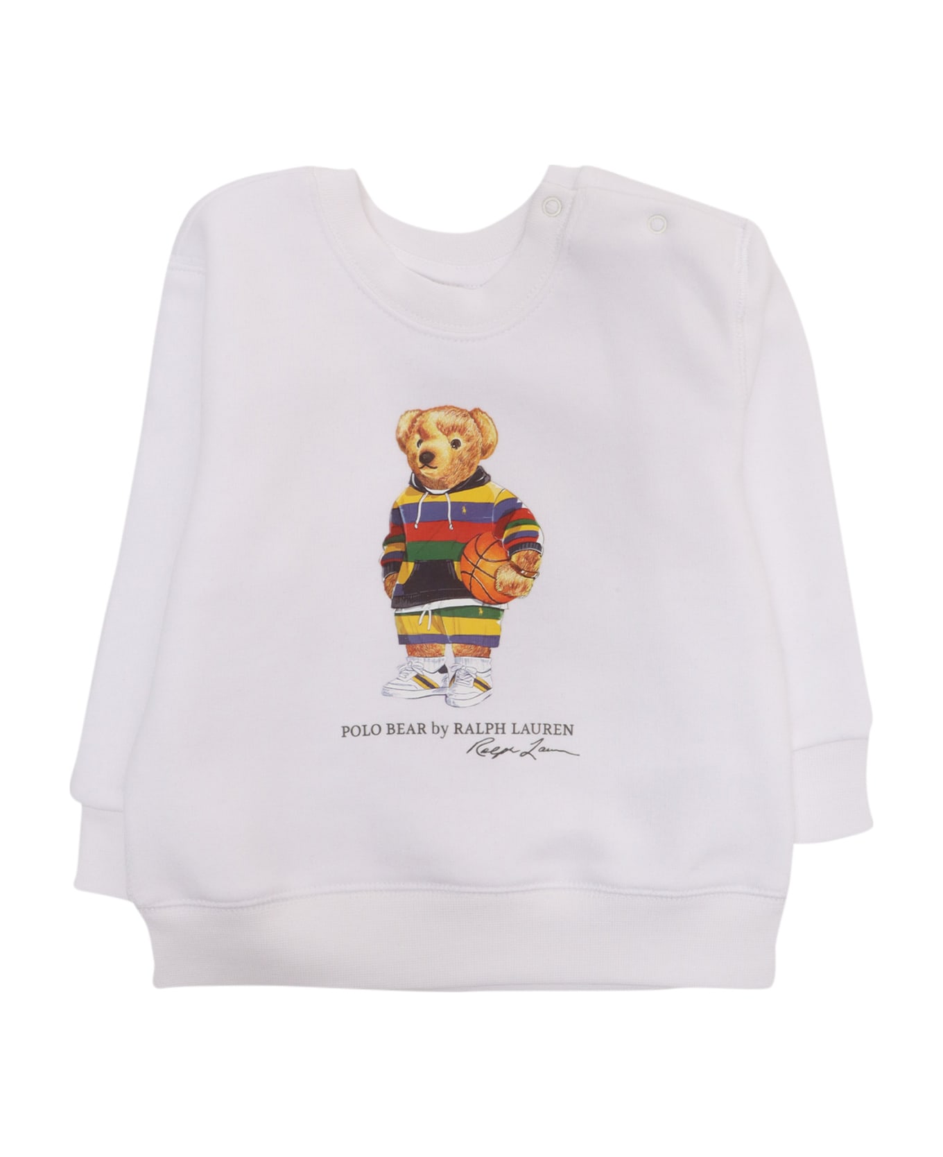 Cotton blend sweatshirt, fleece interior, front print, button fastening on the shoulder, knitted edges