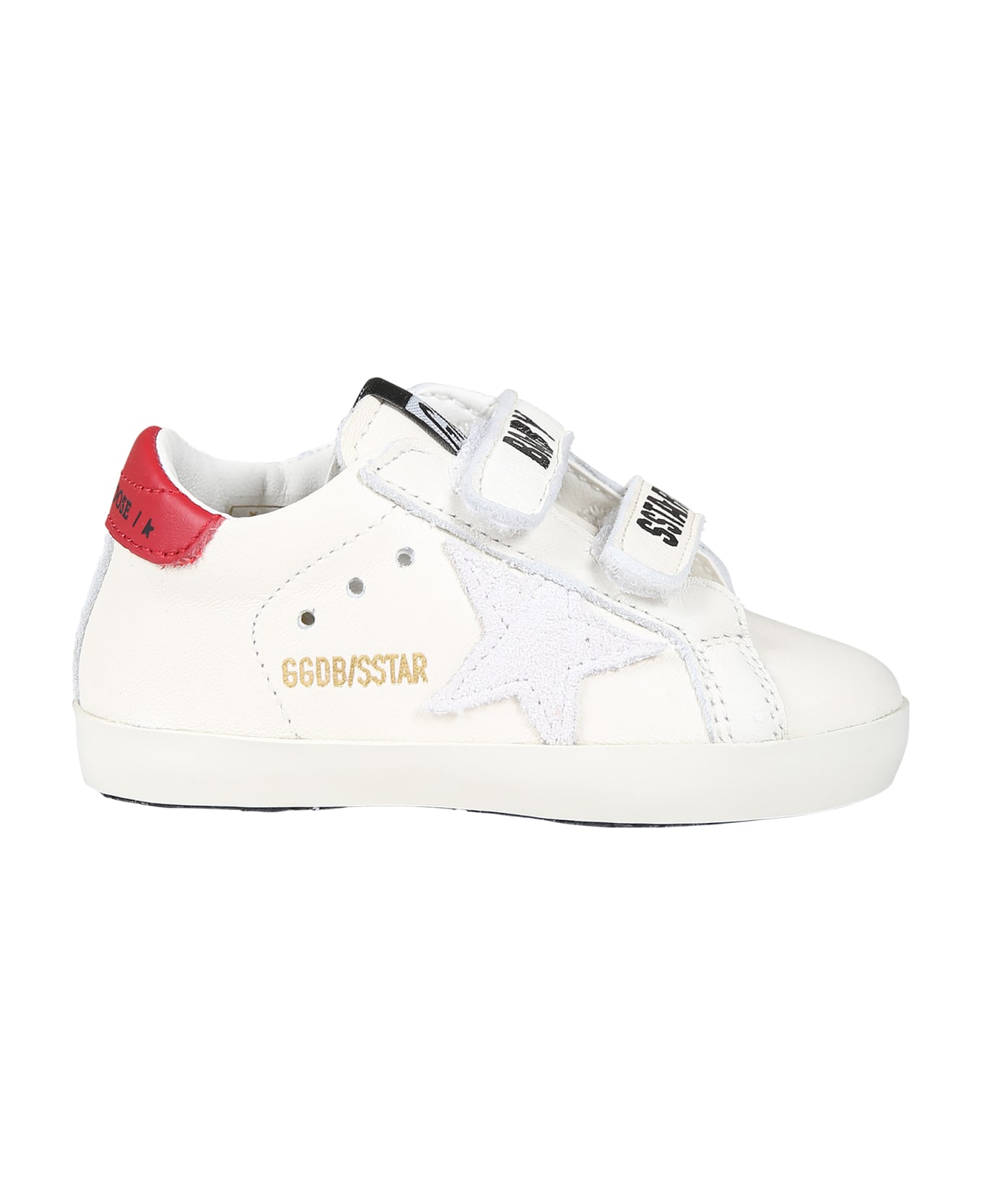 Leather sneakers with rubber sole, double velcro closure, breathable holes on the sides, red heel tab; they are embellished with star and logo on the side and "Baby Star" writing on the top.