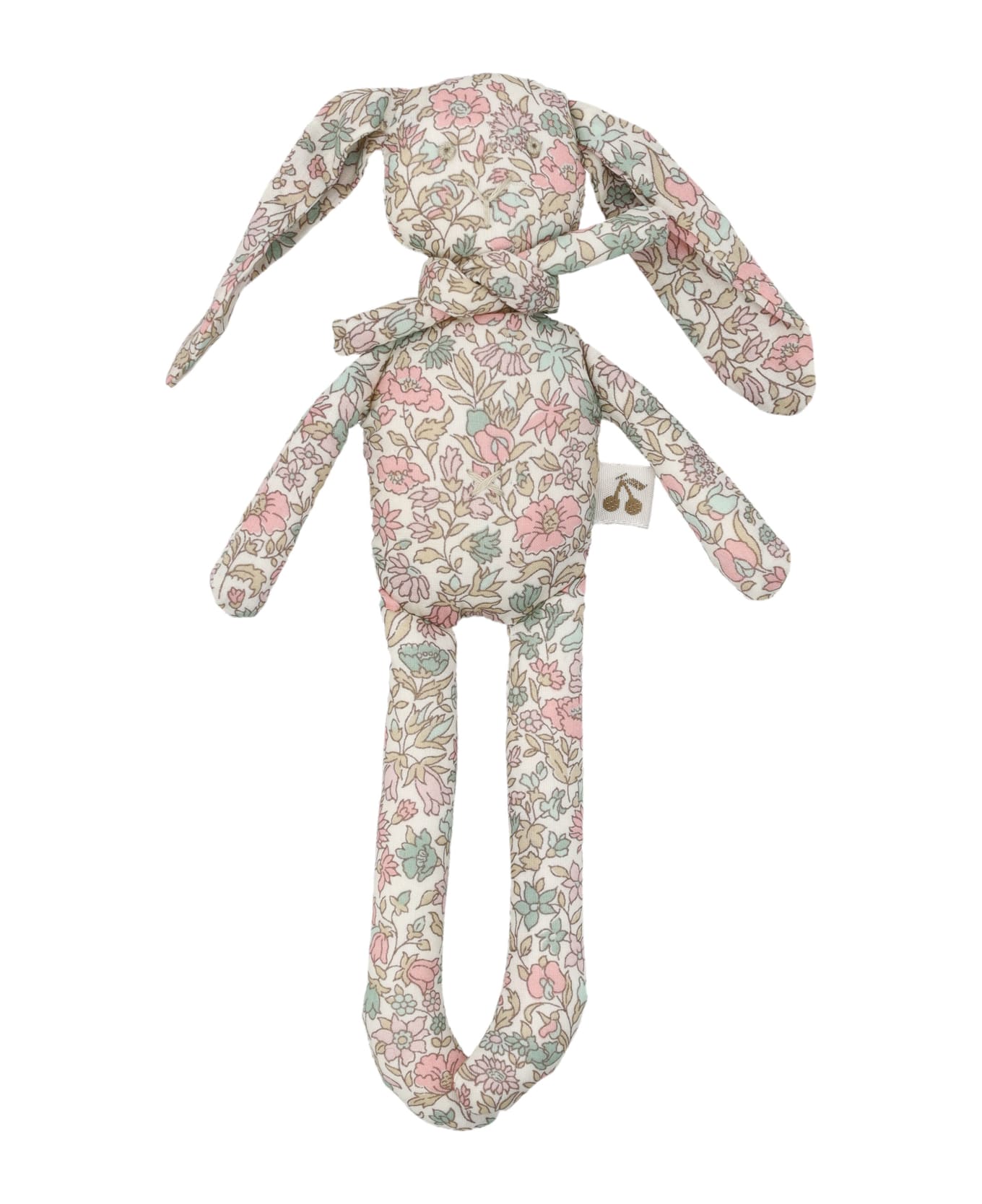 Stuffed Bunny By Bonpoint. Featuring: Solid-colored-cotton Stuffed Bunny Long Ears And Legs Cherry Flag Label Scarf Tied Around The Neck Embroidered Details Pink Flowers Trim Height: 19cm