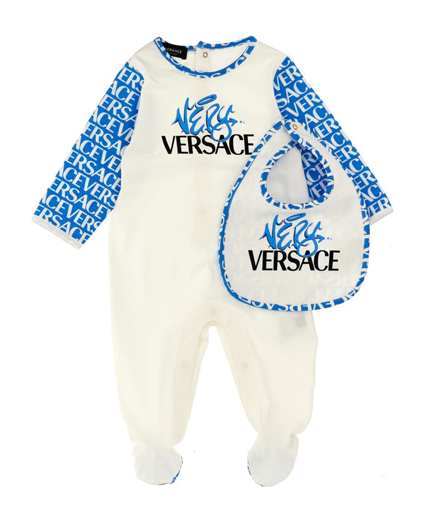 Baby set with bodysuit with 'Versace Allover Kids' printed inserts and a coordinated bib. Composition: 94% cotton 6% elastane