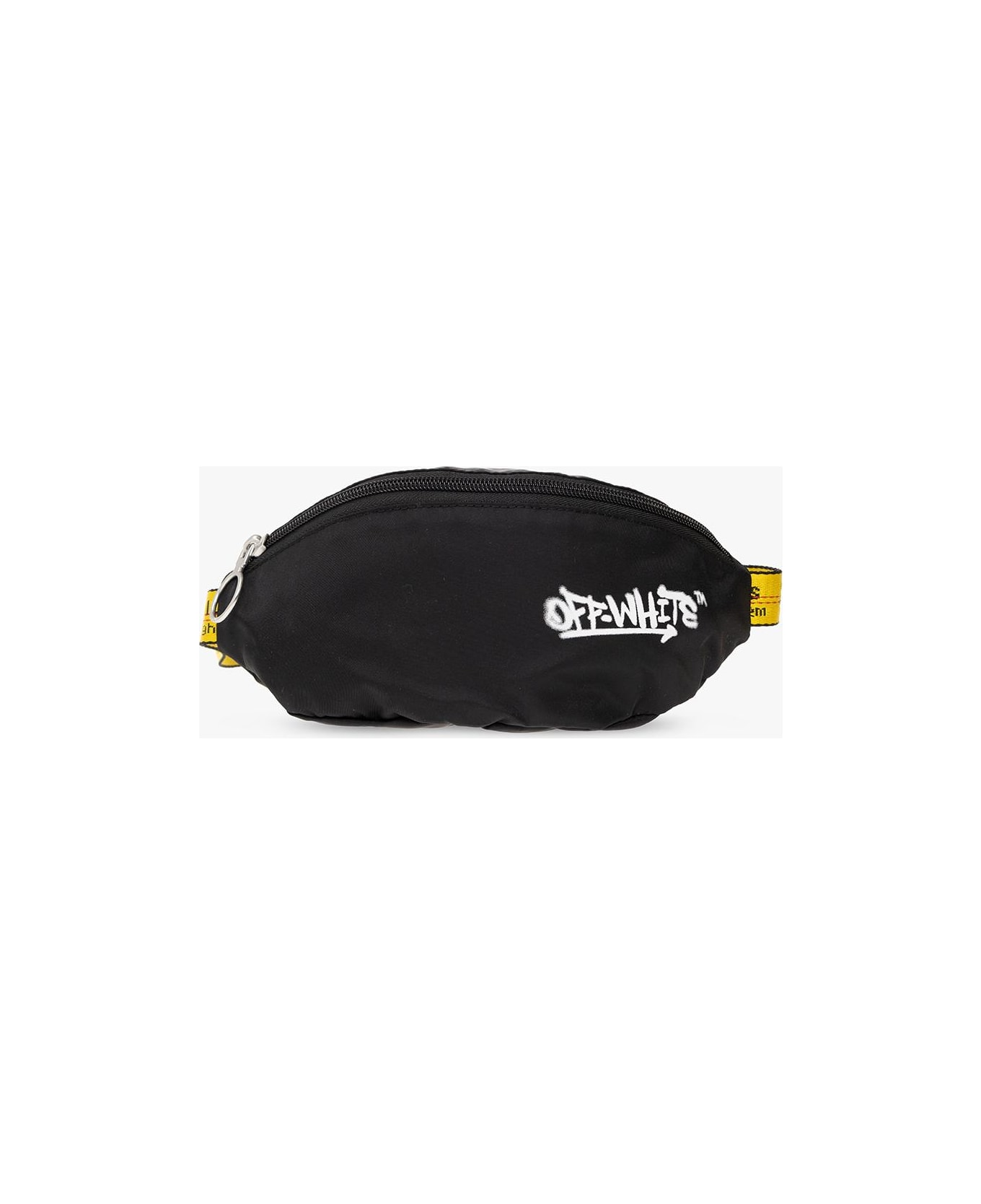 Black belt bag from Off-White Kids. Fastened with a zip, this design features a logo print, adjustable yellow belt, one internal compartment and silver-tone metal hardware. Composition: 100% Polyamide
