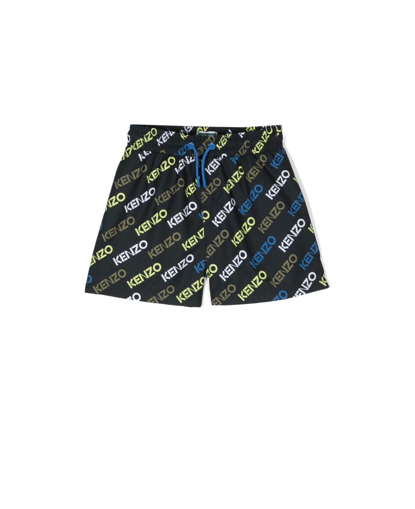 Black Swim Shorts With All-over Logo Print In Polyester Boy