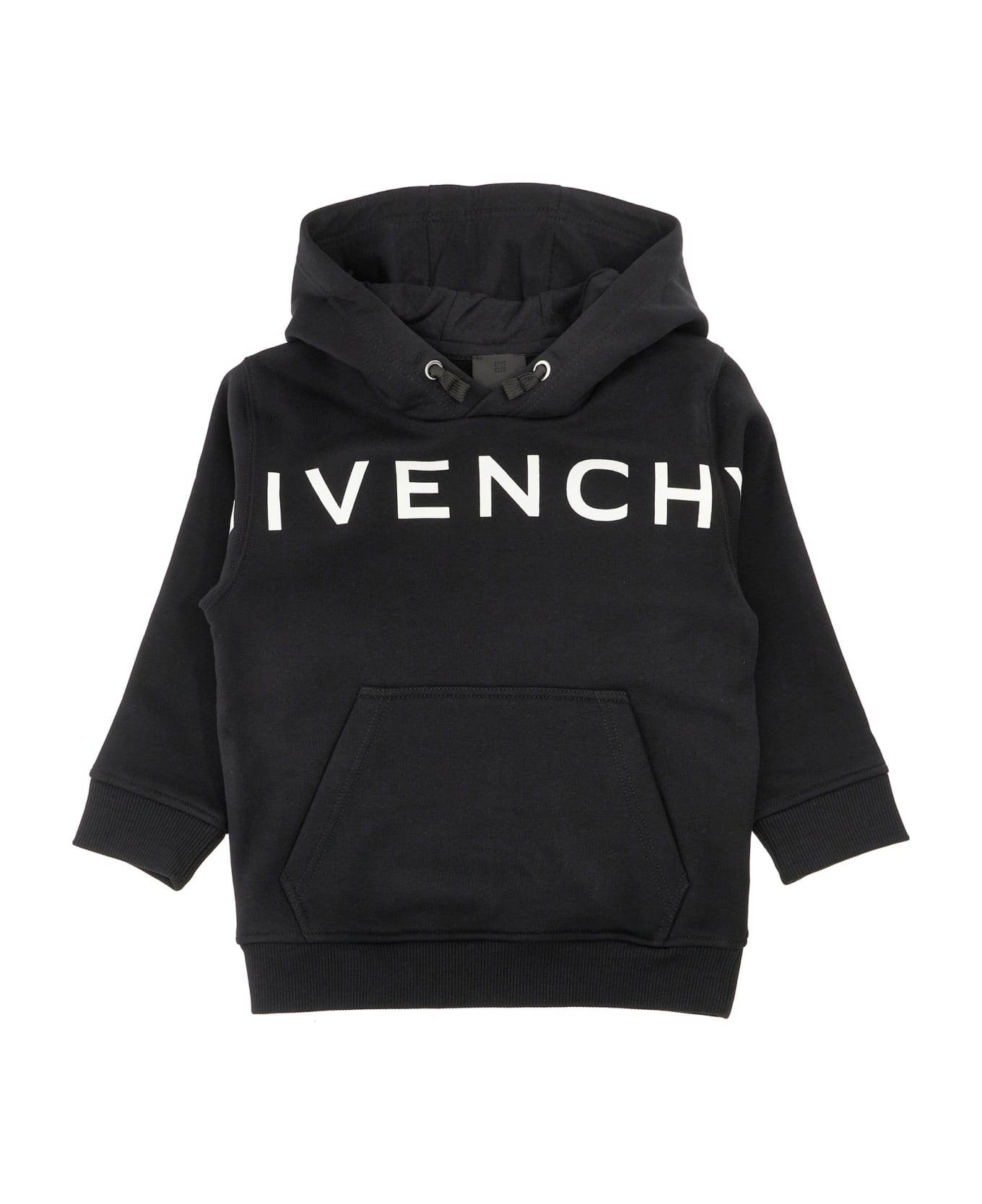 Cotton blend hoodie with logo print on the front and back, kangaroo pocket, long cuffed sleeves. Composition: 86% cotton 14% polyester
