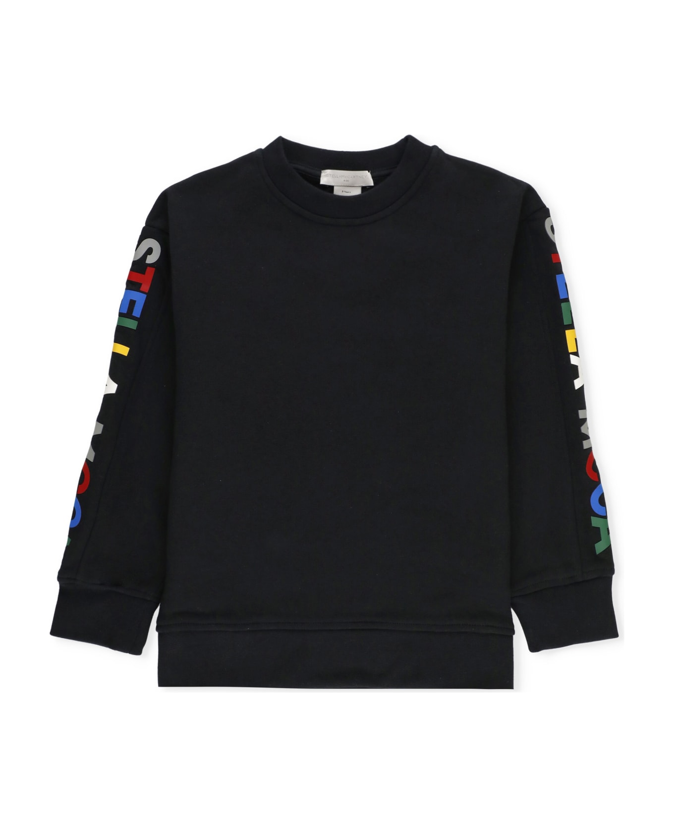 - Black Stella Mc Cartney Junior cotton boy's sweashirt - Crew neckline - Long sleeves with contrasting color printed logo - Elastic ribbed trims Composition: 80% Cotton, 20% Polyester