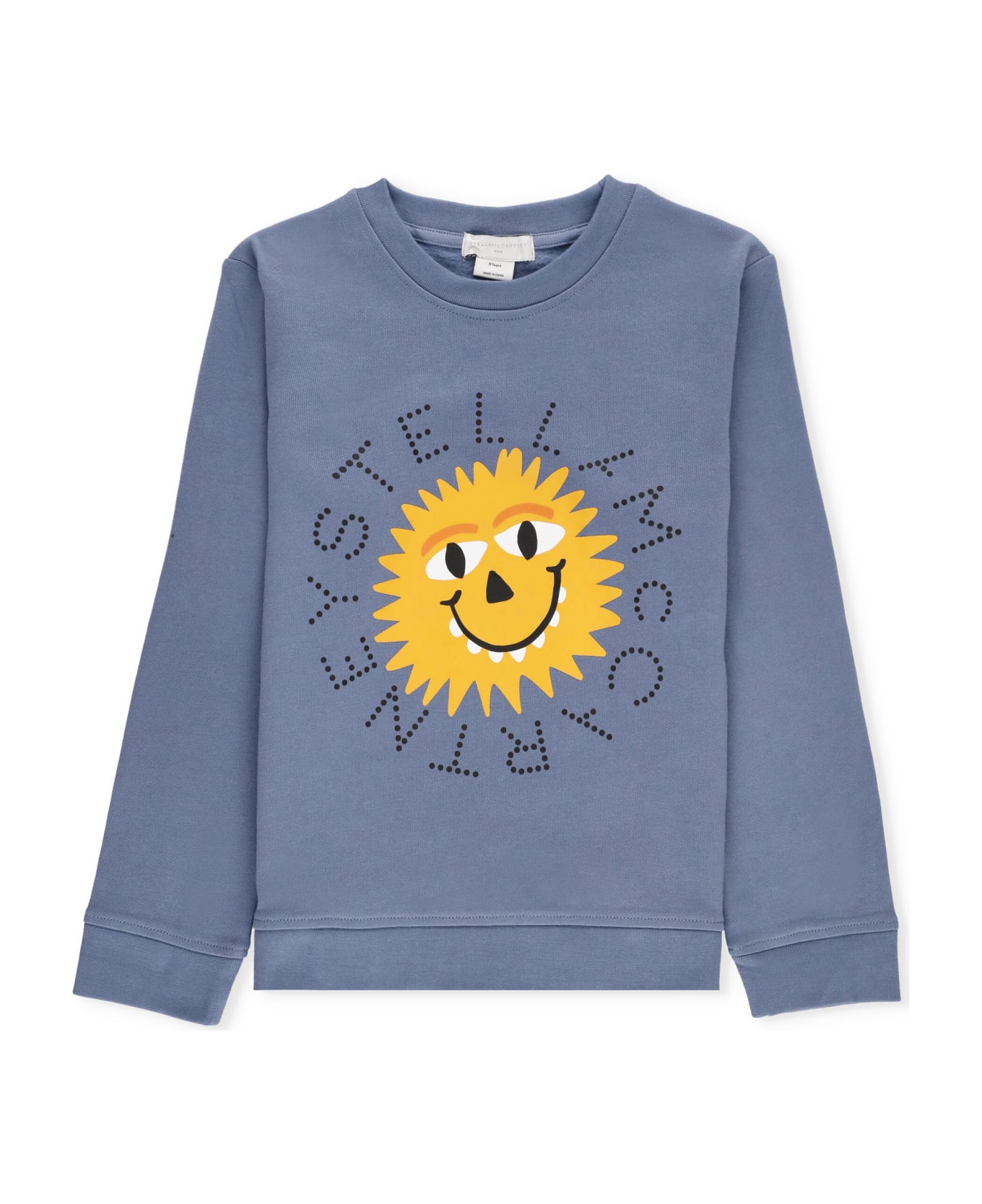 - Blue Stella McCarteney Junior cotton sweatshirt for boy - Creweck - Long sleeves - Elastic ribbed trims - Front contrasting colour print with logo