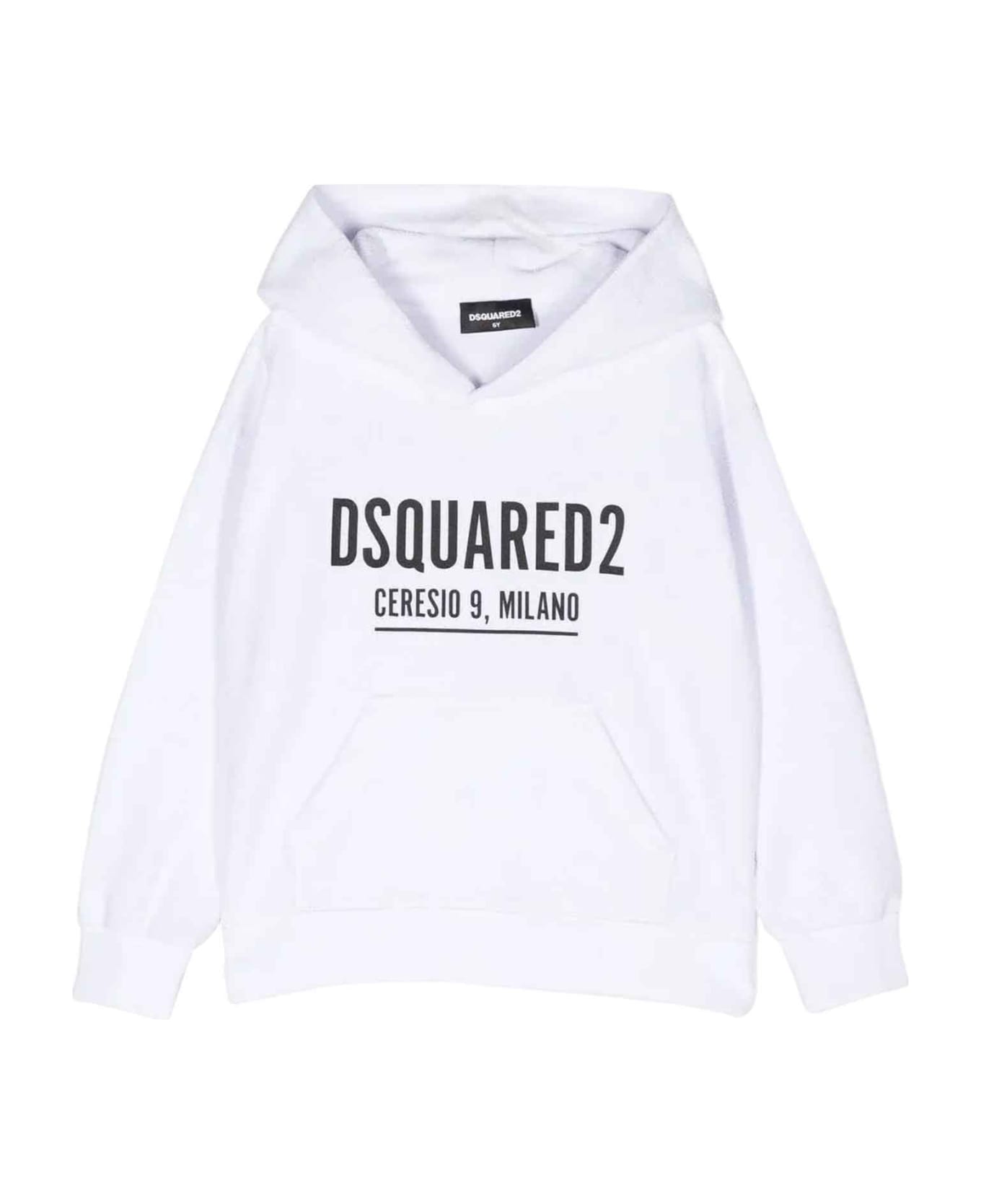 White sweatshirt unisex. Logo print to chest, contrast stitching, front pouch pocket, ribbed cuffs, ribbed hem and long sleeves. 100% Cotton