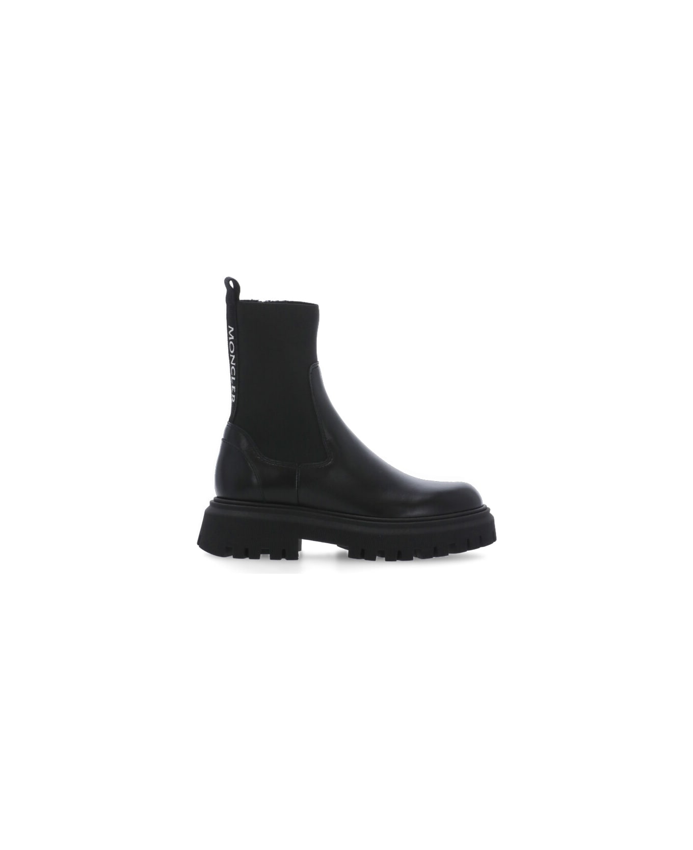 Chelsea Petit Boots from Moncler: - Black Moncler Enfant leather boots for boy