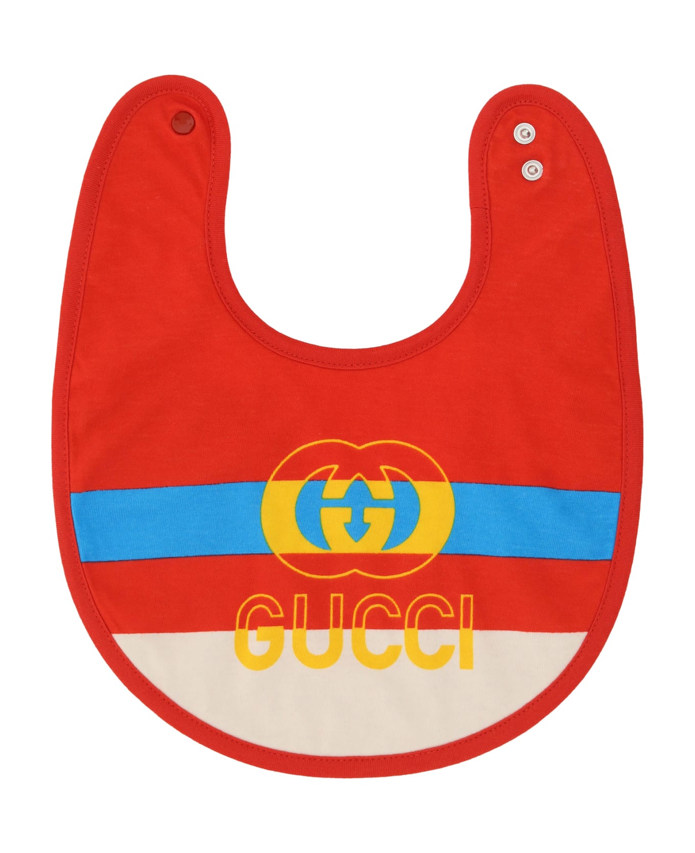 Cotton bib for girl by gucci, back snap fastening, spongy effect design, iconic brand logo printed on the front.