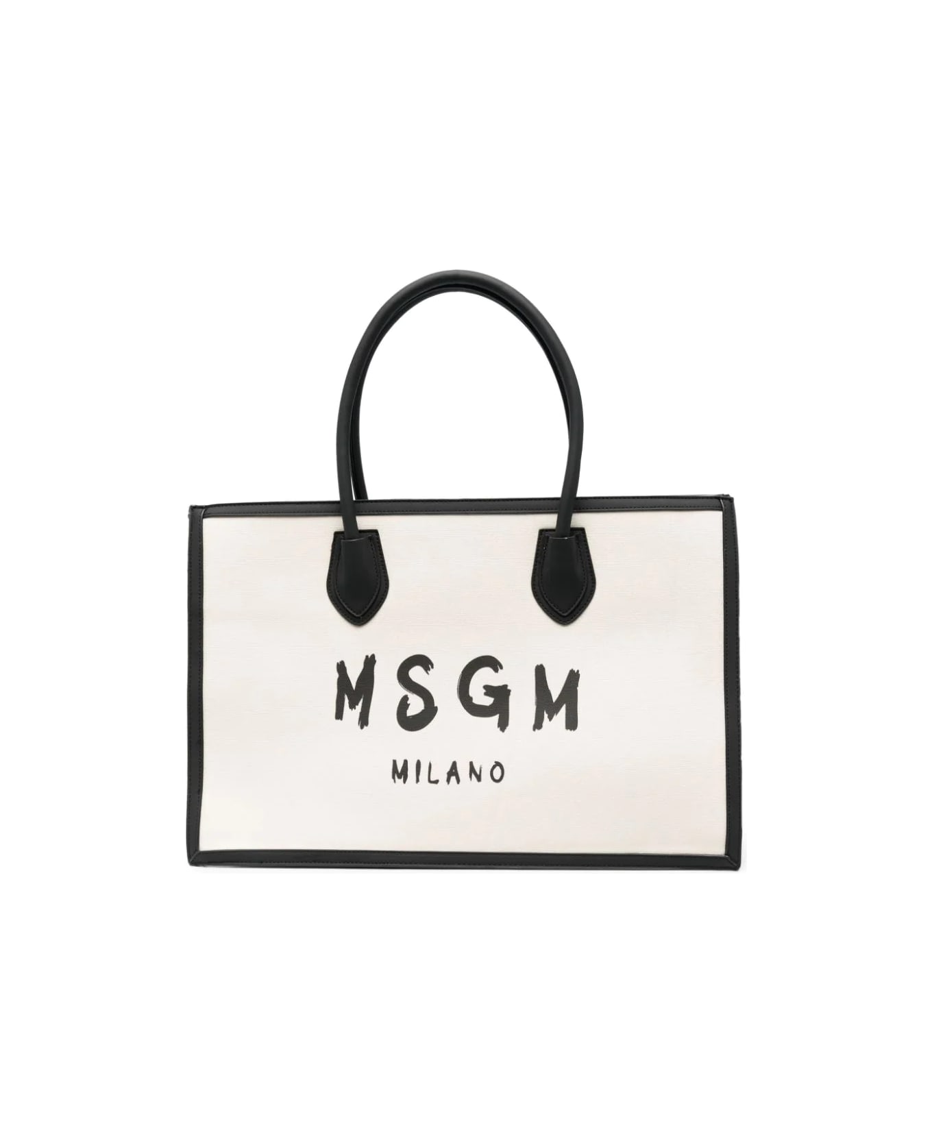 Tonalità bianco avorio, nero, misto cotone, stampa con logo sul davanti, bordo a contrasto, applicazione interna con logo, chiusura superiore con zip, due manici, scomparto unico e tasca interna con zip. Misure prodotto Profondità 18 cm Manico 19 cm Altezza 32 cm Larghezza 49 cm