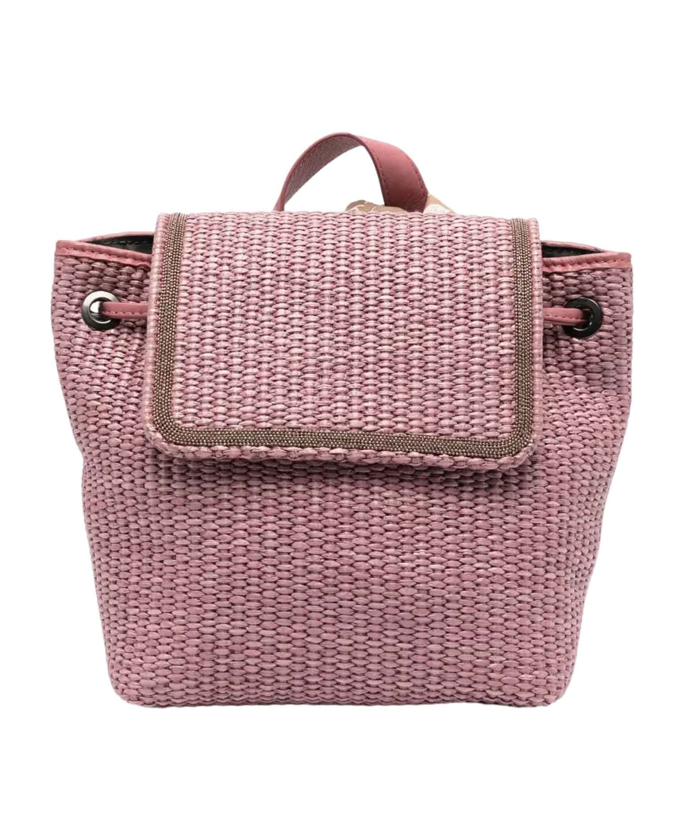 Pink backpack girl. Woven design, bead detailing, attached scarf, flap top with magnetic closure, drawstring top closure, dual adjustable shoulder straps, interior zip pocket and main compartment. Calf Leather 100%
