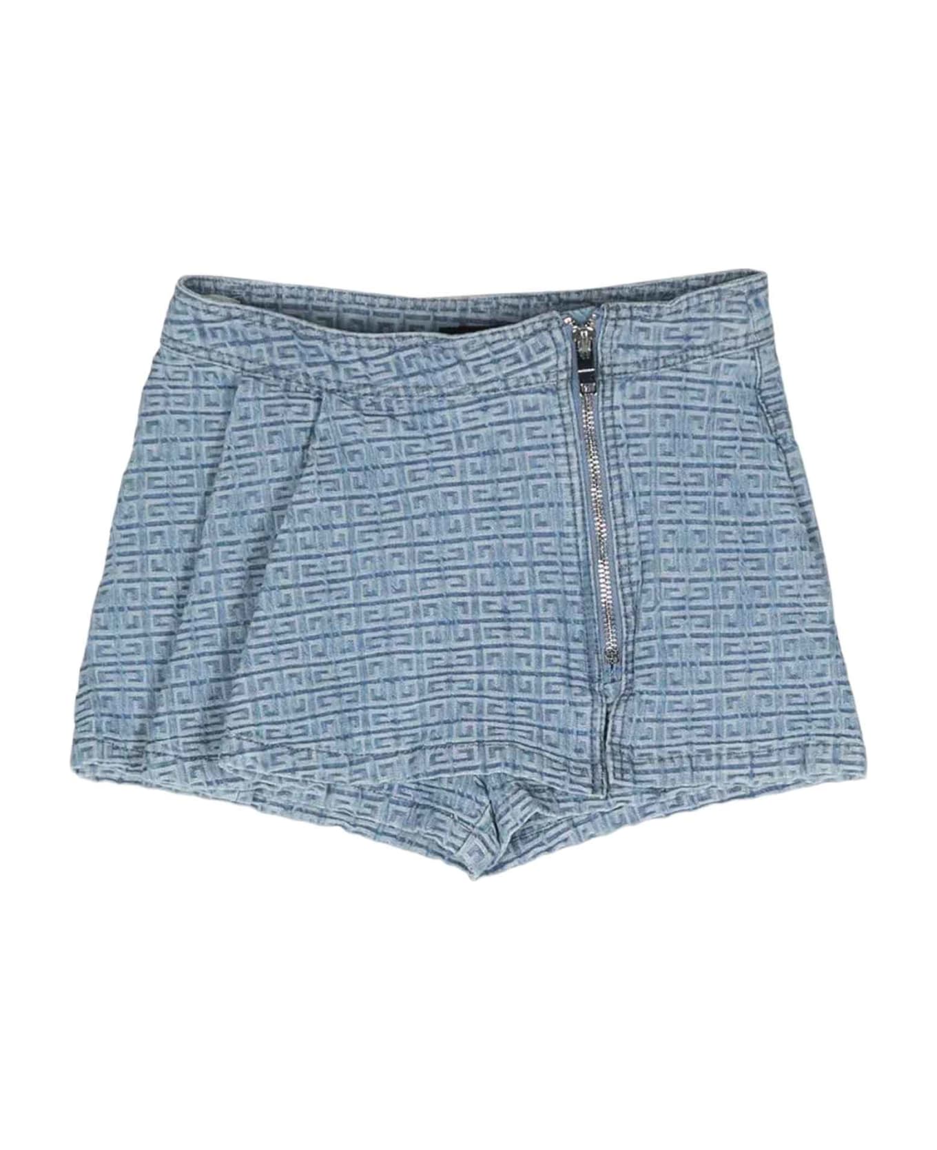 blue denim shorts girl. All-over logo print, front zip closure, two shaped back pockets and straight hem. 100% Cotton