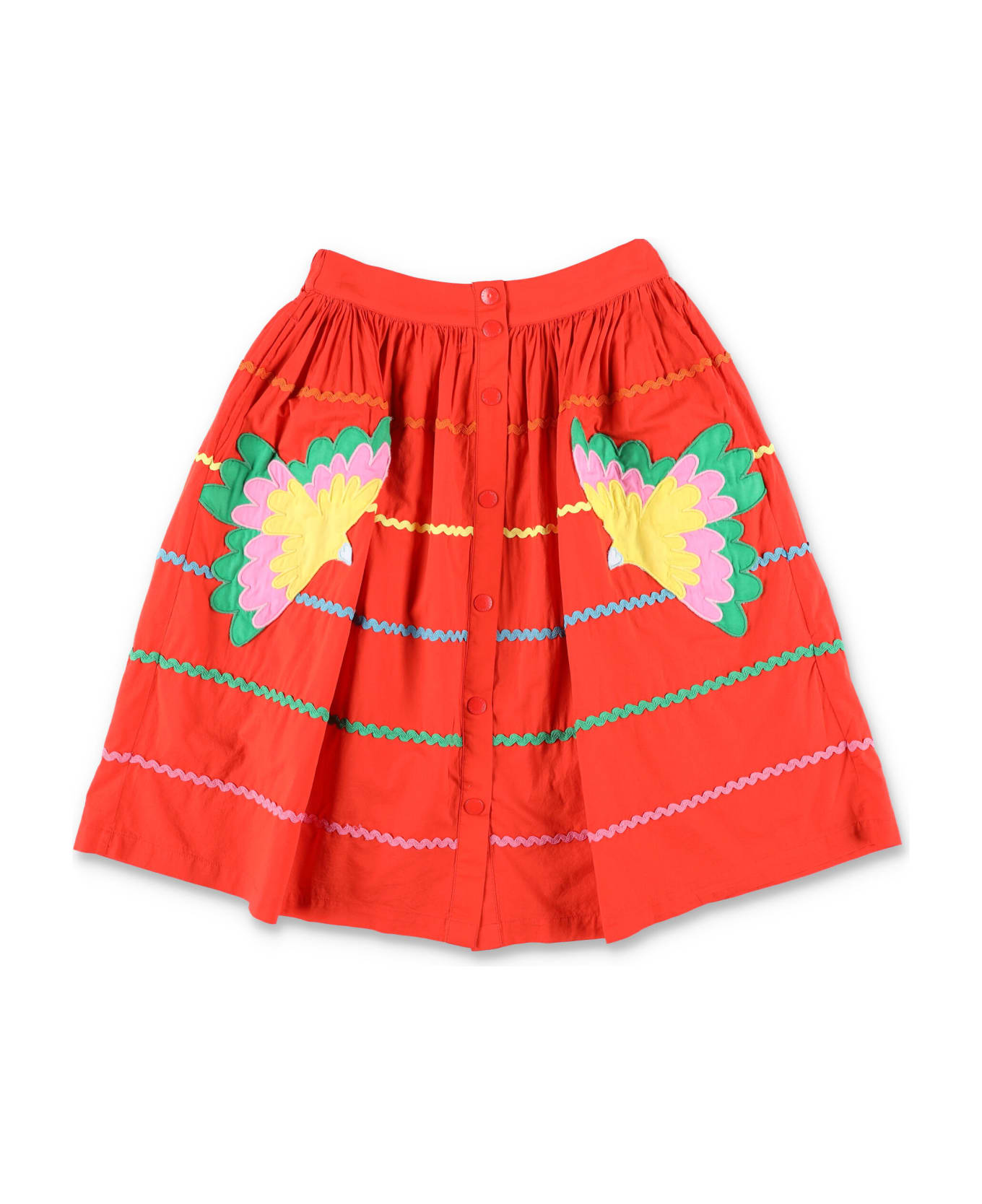 Cotton Full-length Button Skirt By Stella Mccartey Kids. Featuring: High Waist Full-length Snap Button Fastening Multicolour Embroideries Parrots Patches Lined