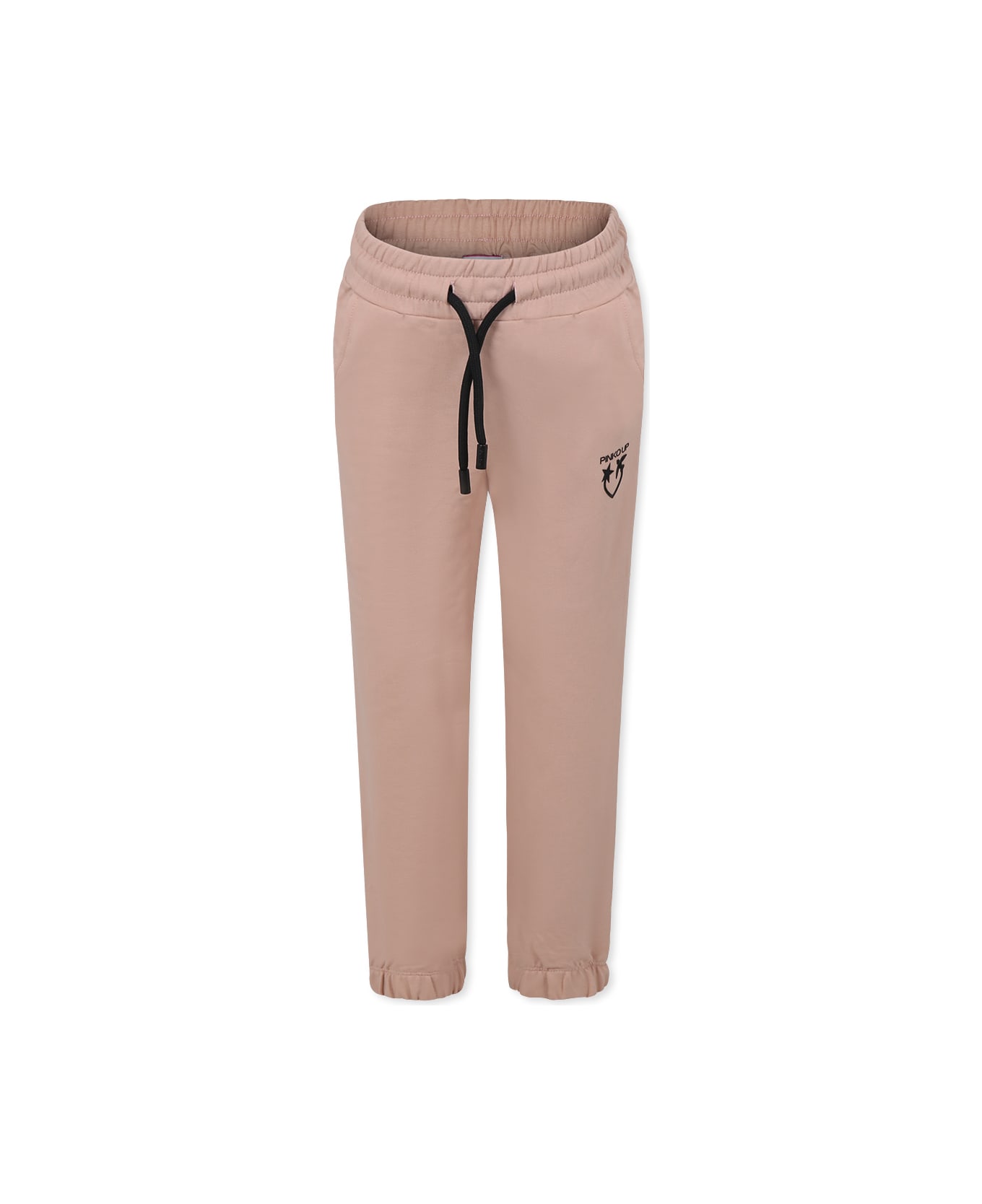 Pink sweatpants in cotton blend, with elasticated waist, drawstring, side pockets and elasticated ankles. They are embellished with logo and black heart on the front.