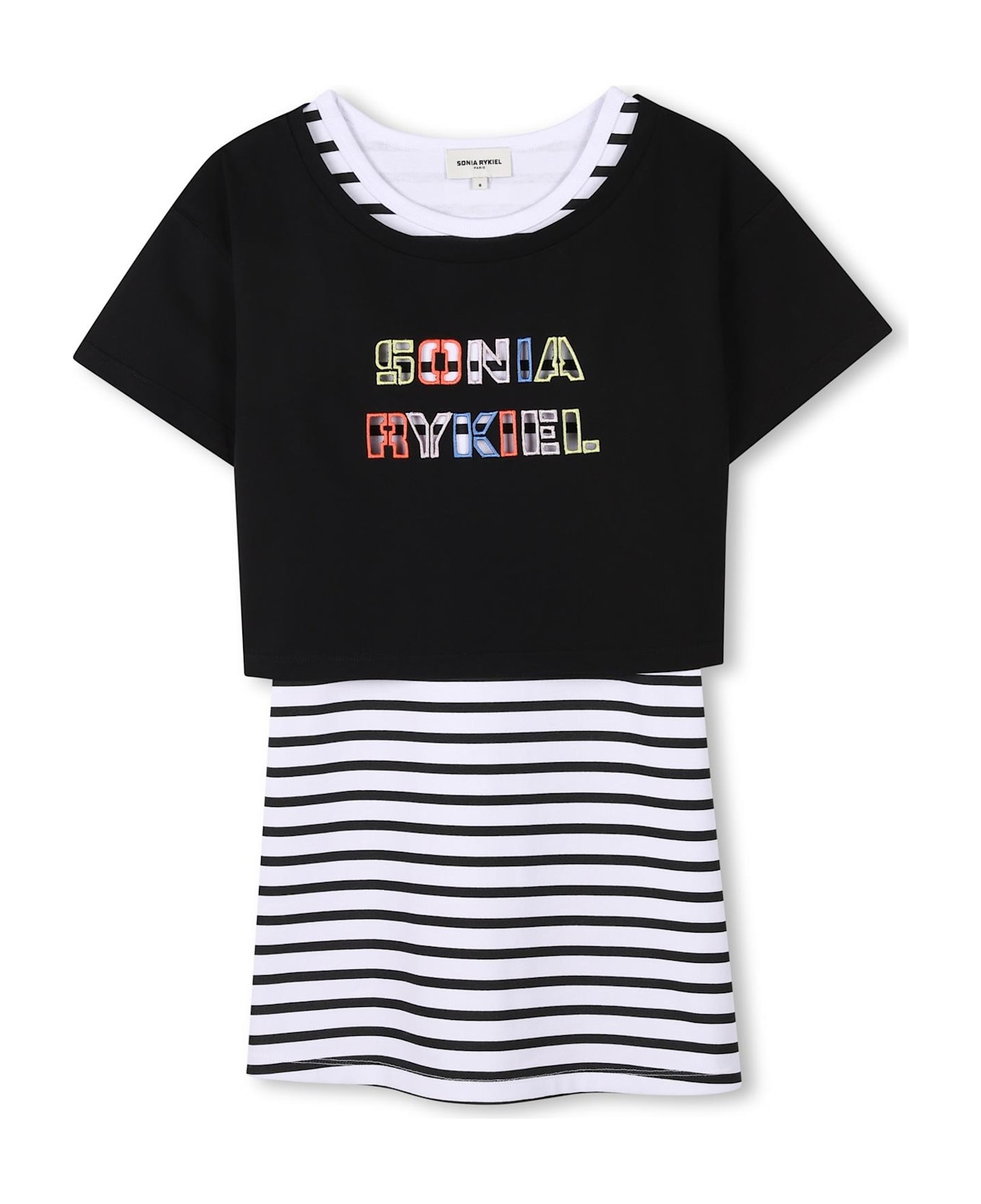 Abito con motivo a righe Caratteristiche nero/bianco cotone design a più strati motivo a righe orizzontali stampa con logo sul davanti scollo rotondo senza maniche orlo dritto Composizione cotone 100% Istruzioni per il lavaggio Lavare in lavatrice