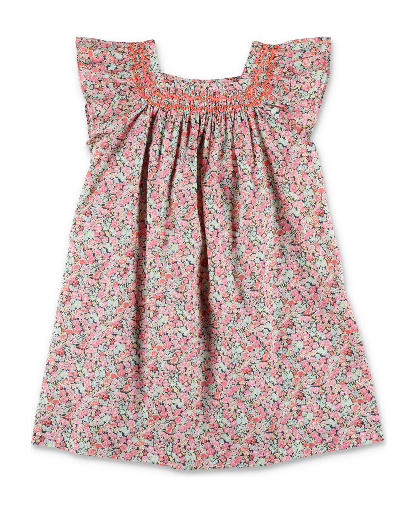 Robe Coryse Dress By Bonpoint. Featuring: Straight Neckline Short Sleeves Embroidered Smocking At Chest Flared Cut Floreal Pattern All Over