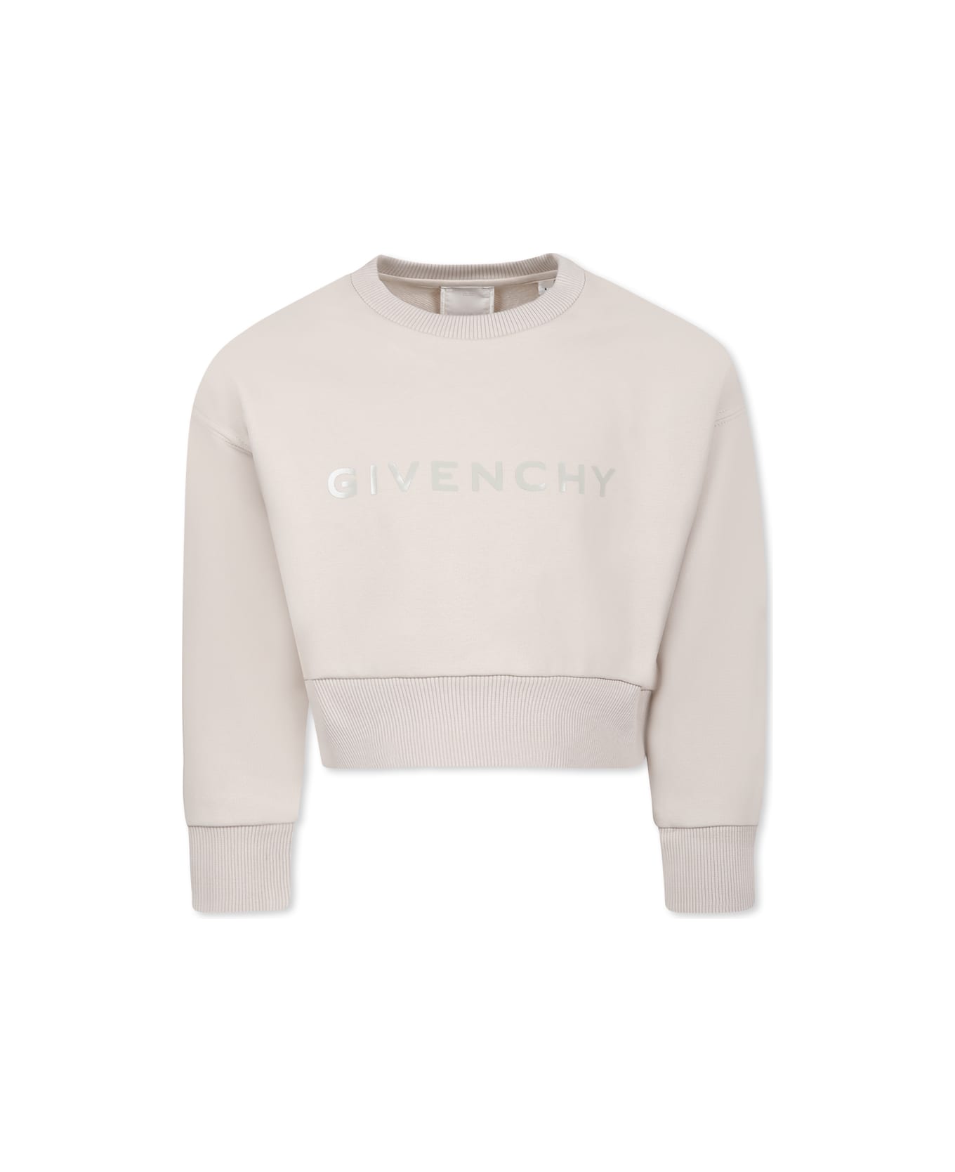 Beige crop sweatshirt from the French luxury brand Givenchy, made of a brushed cotton blend, with long sleeves, a ribbed crew neck, cuffs and hem. It is embellished with front logo and iconic 4G motif on the back.