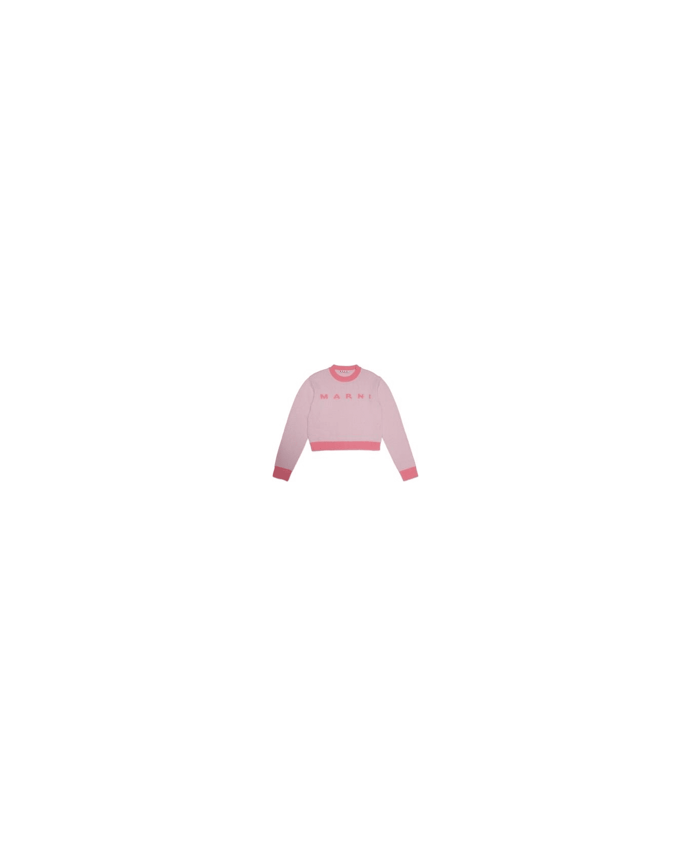 colour-block knitted sweatshirt from MARNI KIDS featuring light pink, flamingo pink, wool-cashmere blend, knitted construction, colour-block panelled design, embroidered logo at the chest, long sleeves, straight hem and ribbed cuffs and hem. Composition: Lana, 70% , Cashmere, 30%