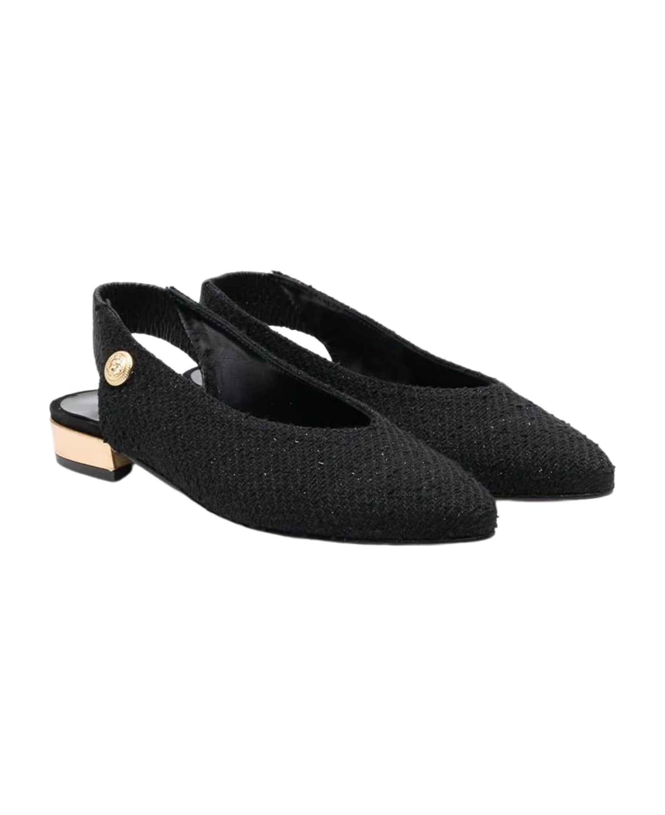 black ballet flats girl with engraved logo. 100% Calf Leather Sole