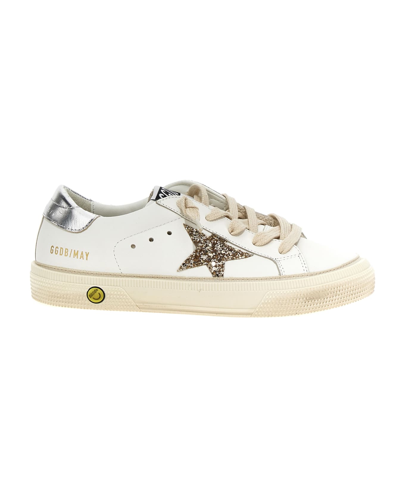May' leather sneakers with glitter star at the side, contrast heel tab, lacing and a rubber sole.