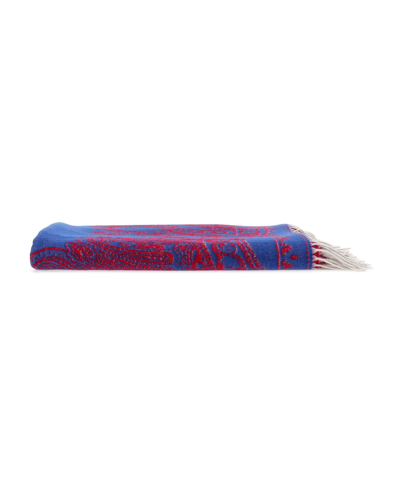 Jacquard wool plaid embellished with 'Paisley' pattern, logo and fringes on the edging. Composition: 100% virgin wool
