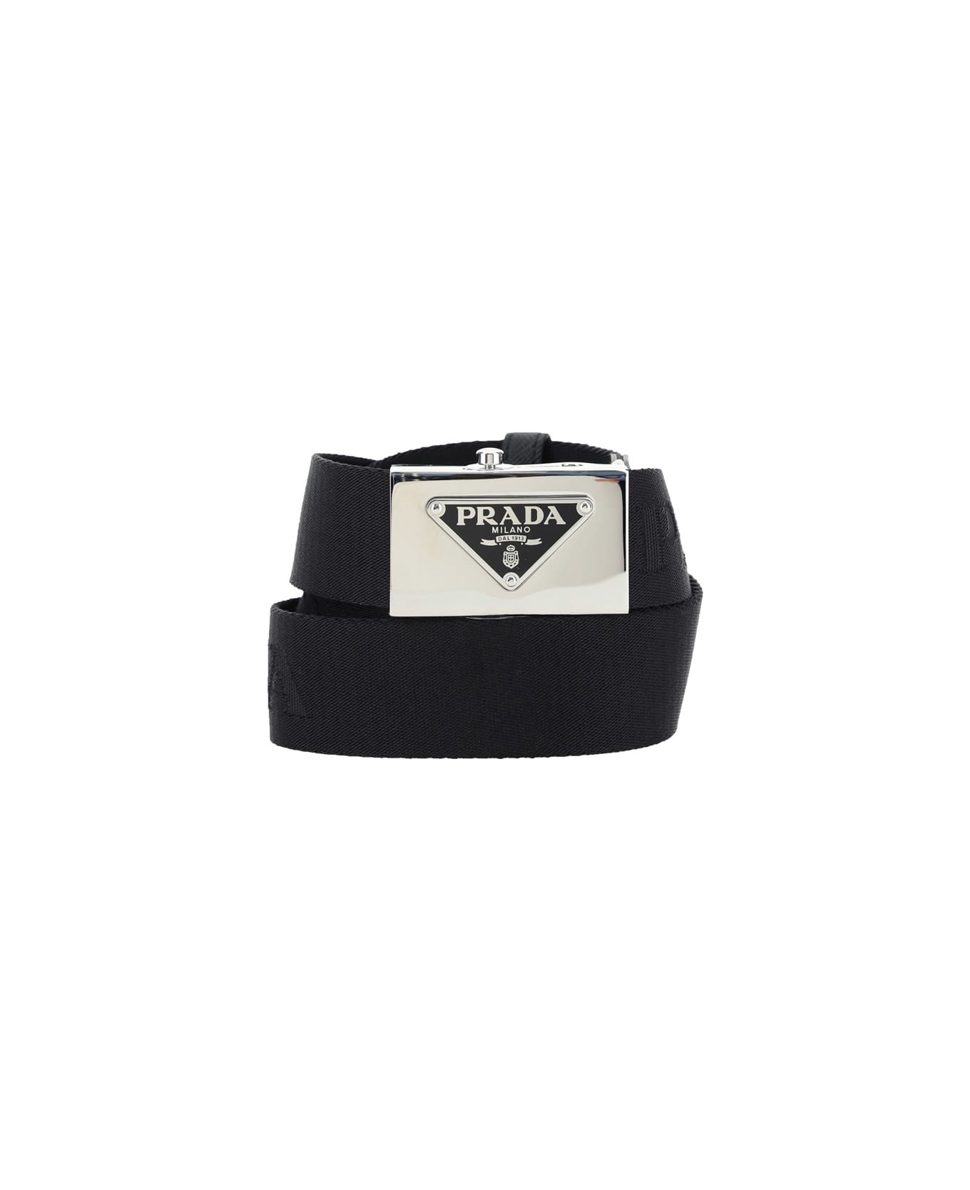 Belt by prada, tone-on-tone logoed jacquard design, front buckle with iconic enameled triangular plaque with contrasting brand signature. thickness: 3 cm. Composition: 78% % Nylon, 78% % Nylon