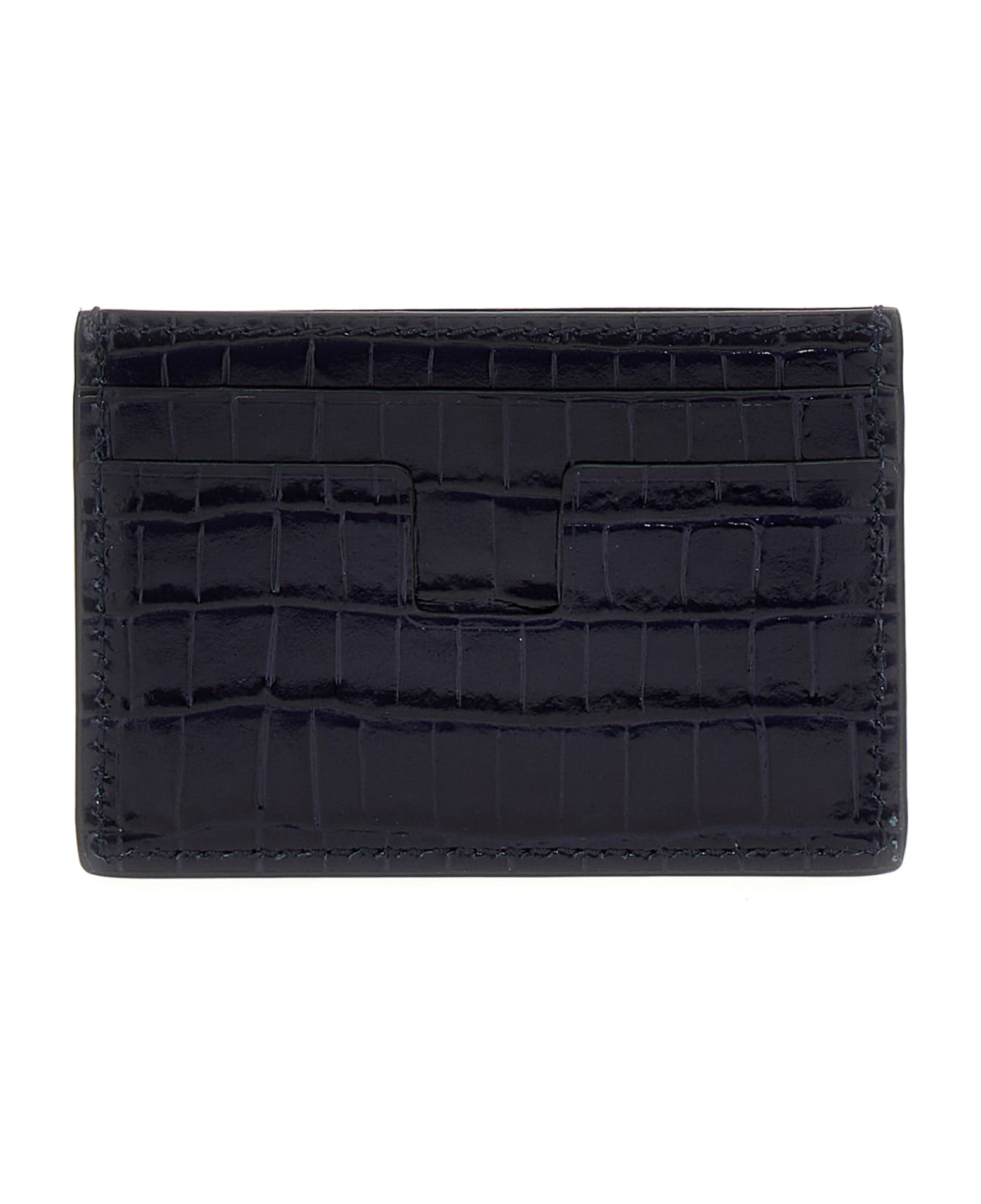 'T line' card holder in crocodile print leather with logo print. Composition: 100% calfskin leather (Bostaurus)