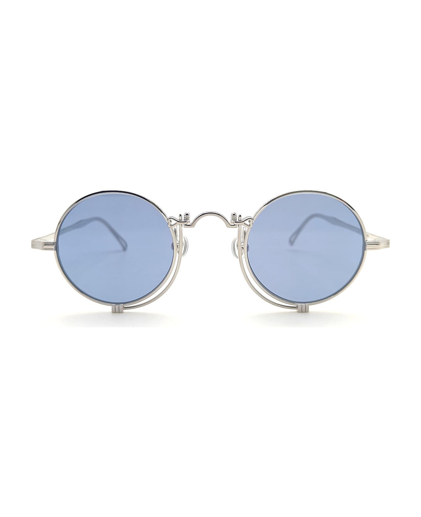 Brand: Matsuda Model: 10601H - Palladium White / Cobalt Blue SKU: 10601H. Sg. Pw. 45 Type: Sunglasses Color: Palladium Material: Titanium Lens color: Cobalt Blue Size: 47mm-27mm-145mm Made in Japan