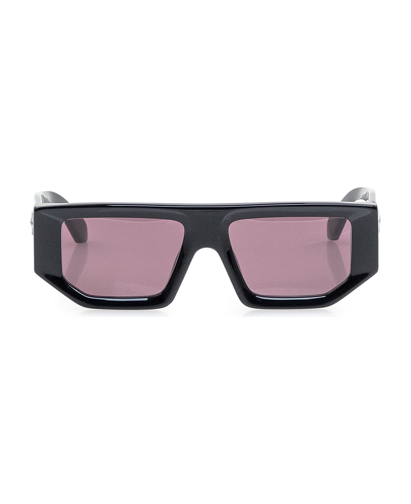 Black sunglasses. Rectangular shape. Logos on the temples. Composition: 100% Acetate