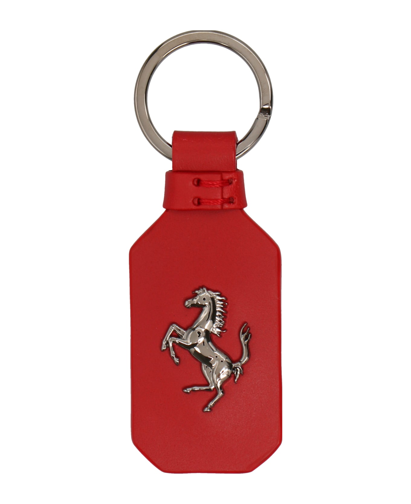 Icon' keyring in leather featuring metal horse detail.