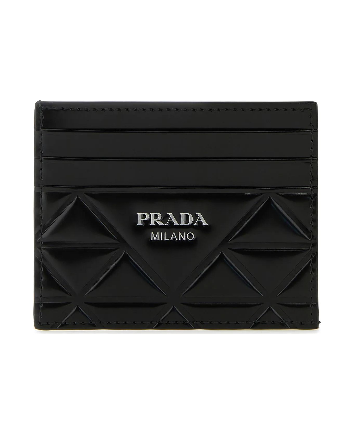 Card holder realized in Triangle motif embossed polished-finish leather characterized by printed logo at the front. - A central slit pocket and six credit card slots Composition: Exterior: 100% Leather