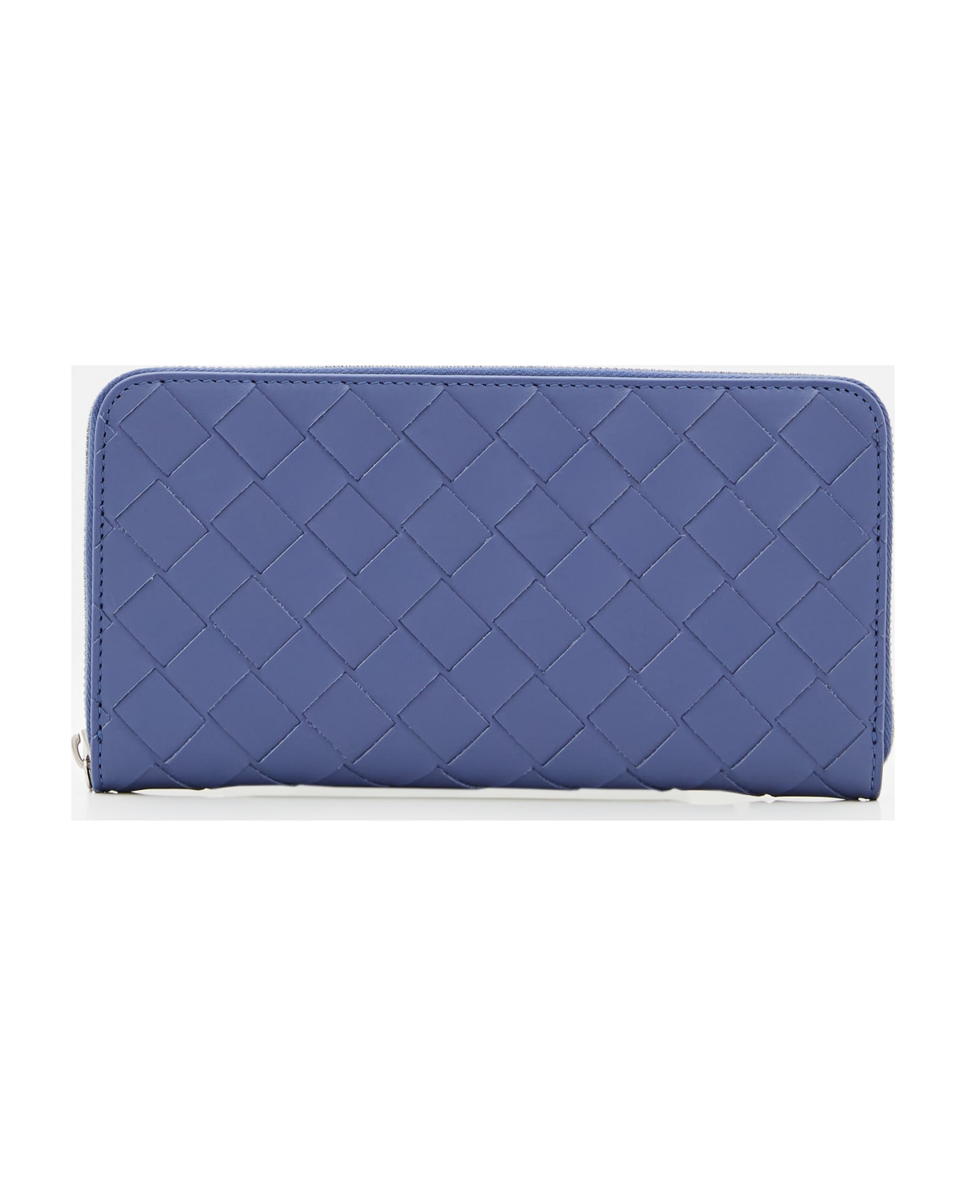 Woven leather ziparound wallet. Zip closure. Colour: light blue.