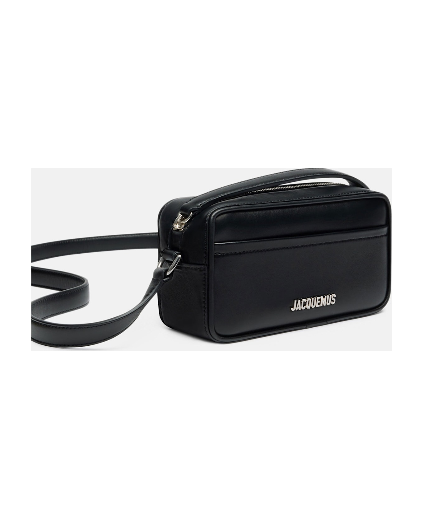 Rectangular bag in smooth leather Zipper closure Zip-puller handle for hand-carrying Removable, adjustable cross-body shoulder strap Patch pocket on front and back Interior card pocket Silver metal logo and hardware Color: black Composition: 100% Cotton